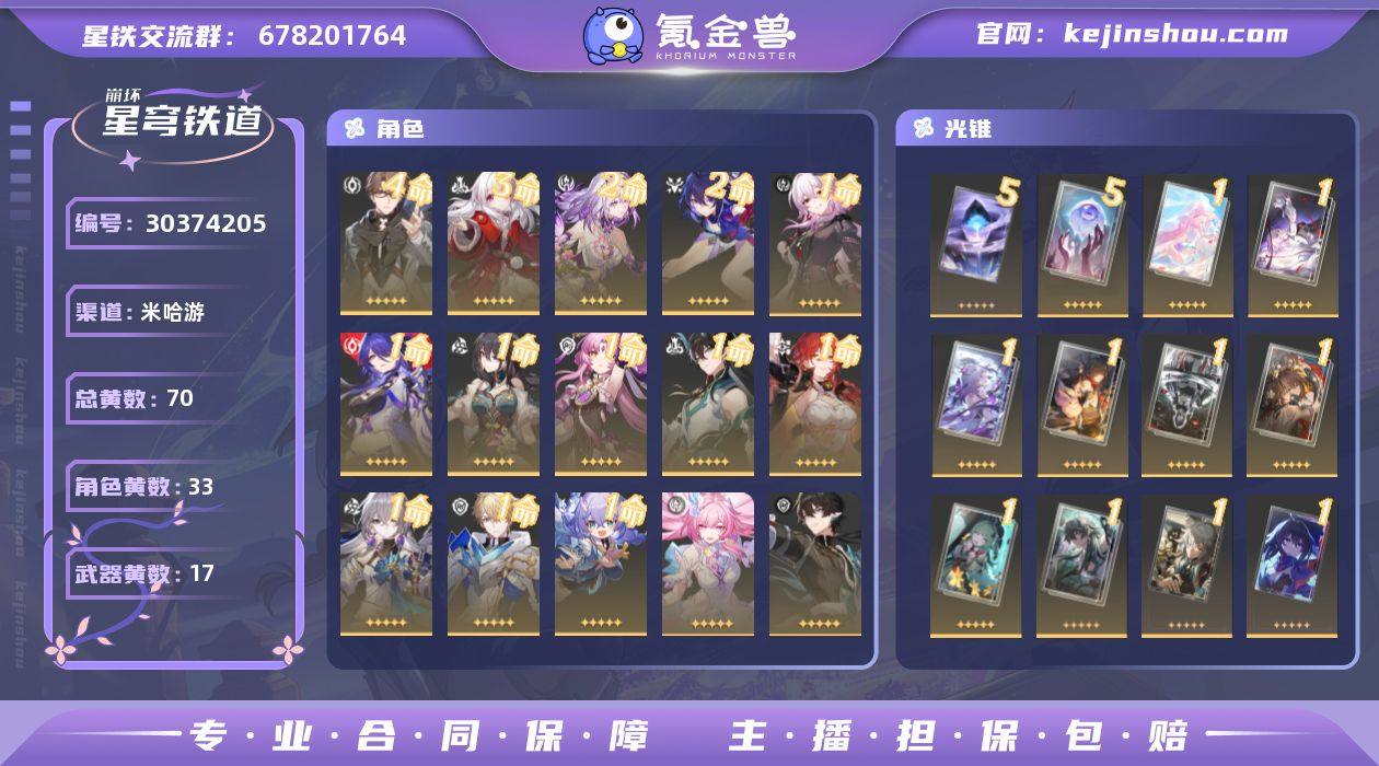 不送邮箱的原因是因为这个号的前身是从原神的一个自抽号上来的。但是这个号本身没有科技。那个邮箱我修改过密码和登录设置,我现在自己也找不到密码输的乱码也忘记了。如果有需要的话,我可以尝试找回。 可出战有仪器的角色基本均为大毕业。瑕蝶全国仪器排名前200。歪了一手大概提升之后可以到全国前30