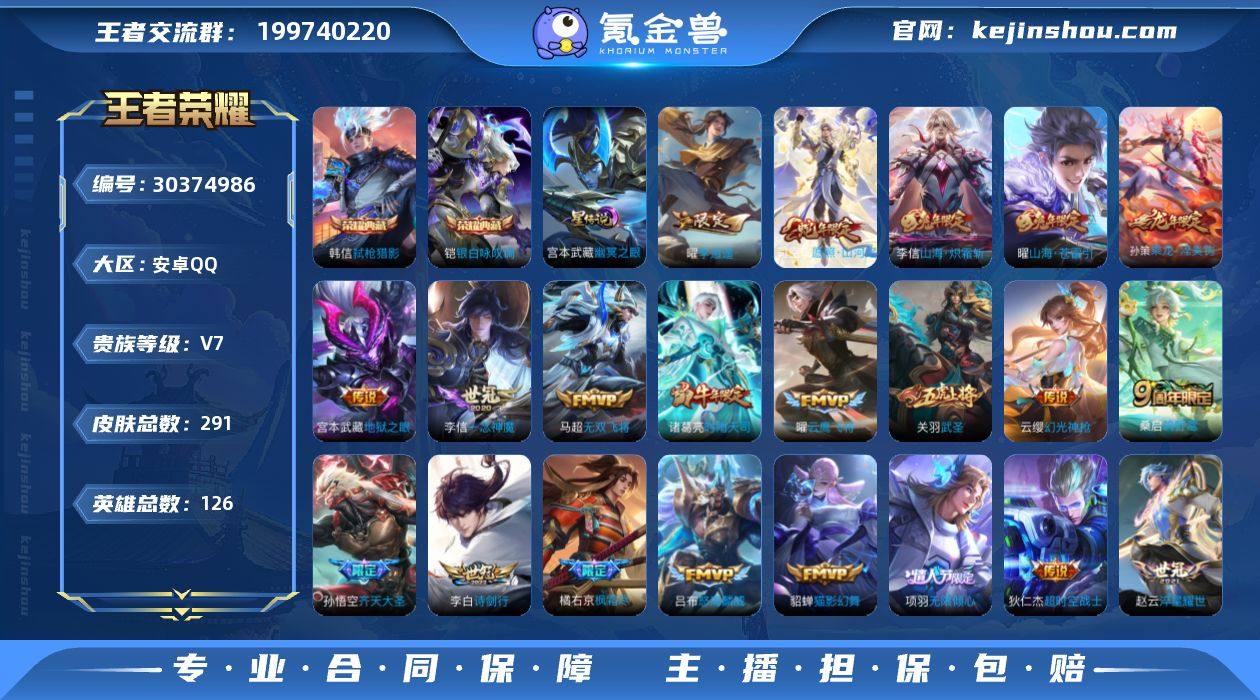 安卓Q-V7-最强王者段位-126英雄-291皮肤-2典藏皮肤-25传说-98史诗【英雄全皮】:孙权全皮,橘右京全皮,李信全皮,司空震全皮【荣耀典藏】:铠银白咏叹调,韩信弑枪猎影【传说皮肤】:司空震愿照山河定,云缨幻光神枪,桑启鸣野蒿,孙策乘龙淬吴钩,澜电玩雷克斯,项羽无限倾心,孙悟空齐天大圣,曜山海苍雷引,李信山海炽霜斩,吕布怒海麟威,李白诗剑行,橘右京枫霜尽,后羿无尽星芒,马超无双飞将,赵云淬星耀世,曜李逍遥 ,诸葛亮时雨天司,虞姬启明星使,关羽武圣,曜云鹰飞将,李信一念神魔,貂蝉猫影幻舞,花木兰冠军飞将,宫本武藏地狱之眼,狄仁杰超时空战士【限定皮肤】:蒙犽顽岩魄,姜子牙天穹之誓,狄仁杰阴阳师,廉颇寅虎御盾,赵云皇家上将,赵云引擎之心,赵云龙胆,赵云百木心枪,墨子神迹守卫,孙尚香蔷薇恋人,庄周高山流水,钟无艳超时空战士,孙膑寅虎展翼,扁鹊奇幻香踪,白起夜都怪侠,芈月幻夜卜梦,元歌无心,夏侯惇匿光决锋者,甄姬落雪兰心,马可波罗山海玄木吟,狄仁杰魔术师,狄仁杰万华元夜,达摩沙漠行僧,项羽海滩派对,项羽无限倾心,老夫子航海奇遇记,关羽武圣,程咬金演武夺筹,露娜一生所爱,王昭君午后时光,兰陵王金庭之子,花木兰默契交锋,橘右京枫霜尽,孙悟空孙行者,孙悟空齐天大圣,后羿圣弓游侠,后羿无尽星芒,张飞虎魄,李元芳云中旅人,虞姬启明星使,钟馗驱傩正仪,杨戬潮玩骑兵,女娲朔望之晖,干将莫邪真爱魔法,雅典娜黎明之约,鬼谷子五谷丰年,诸葛亮时雨天司,黄忠烈魂,黄忠火炮绅士,铠青龙志,苏烈千军破阵,百里玄策原初追逐者,百里守约朱雀志,梦奇顽趣,沈梦溪大漠名商,明世隐吟游魔法,裴擒虎天狼狩猎者,裴擒虎擒涛扼浪,狂铁电玩高手,云中君纤云弄巧,李信山海炽霜斩,上官婉儿梁祝,嫦娥拒霜思,嫦娥暖冬兔眠,曜李逍遥 ,曜山海苍雷引,...