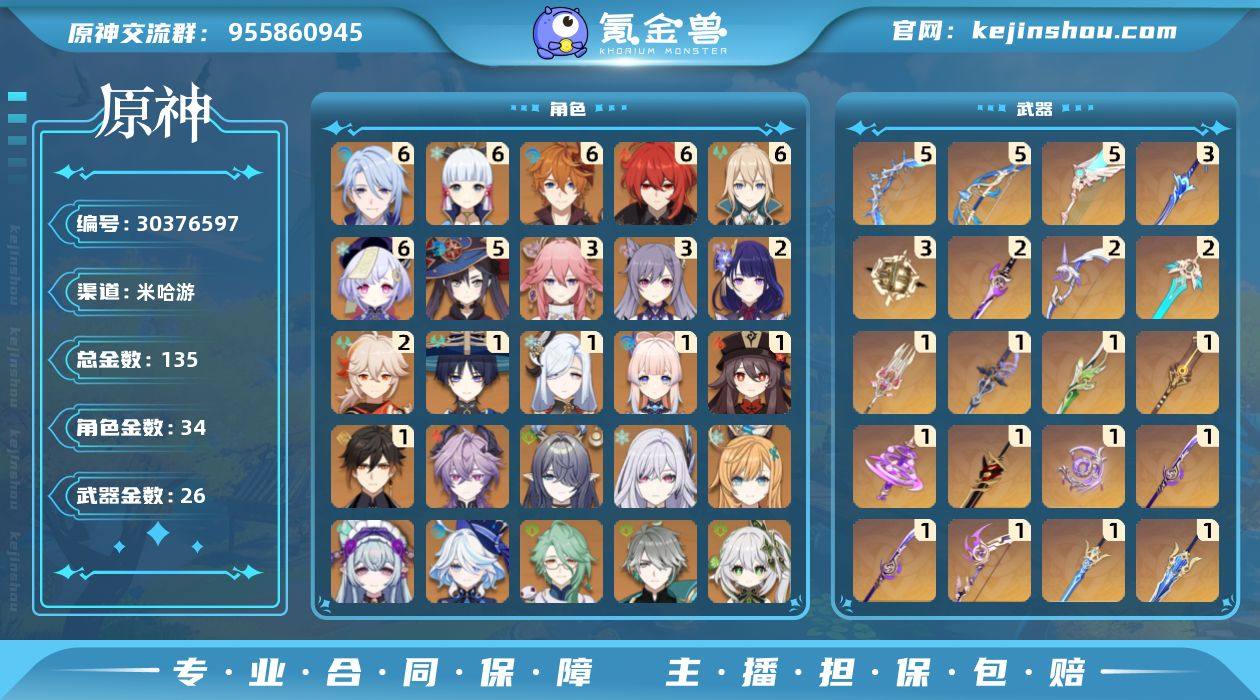 5星角色数: 34