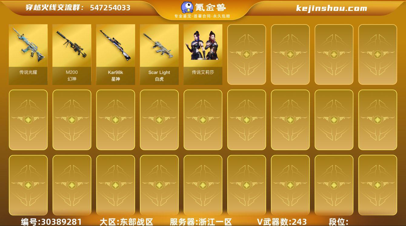 Y192822(传说艾莉莎+传说光耀+幻神+98k星神换皮+白虎三件套+6盘6烈+6黑骑士+蝴蝶+五套年套)cf东部/浙江1区/243v/传说艾莉莎/传说光耀/m200幻神/王者幻神/白虎+音效卡+虎啸皮+电玩粉兔皮/白虎之魄/98k星神+破竹皮/神工天巧套/夜魔套/雷暴套/堕天神套/雷霆套/6黑骑士+音效卡+地狱火皮/6盘+6烈+蝴蝶/qbz独角/火麒麟+音效卡+盘古皮+白虎皮/毁灭+音效卡+魔灵皮/雷神+音效卡+传奇n9皮/金色蔷薇+电竞之星皮/王者魅影(四防)/王者零(四防)/迷迭香/炫 /可排
