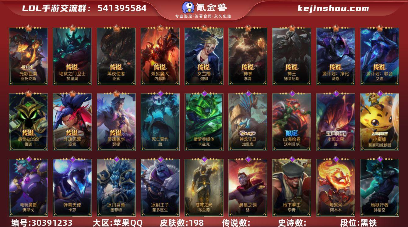 133英雄-198皮肤 【神话皮肤】:桃映暖春 灼灼芳菲 拉克丝,夜星流火 金克丝,天命豪侠瑟提,乘龙破渊 李青,天命豪侠 瑟提 【限定皮肤】:山海绘卷 沃利贝尔 【传说皮肤】:光影巨翼 亚托克斯,海魔至尊 亚托克斯,源计划:净化 薇恩,黑夜使者 亚索,神龙尊者 昼日真龙 亚索,斗魂无双 亚索,神拳 李青,炼狱魔犬 内瑟斯,灵魂莲华 瑟提,神王 德莱厄斯,女主播 迦娜,源计划:联合 艾希,地狱之门卫士 加里奥,最终BOSS 维迦 【史诗皮肤】:地狱火 阿木木,摄魂猎手 凯隐,雷喵喵尔 雷恩加尔,太空律动 “舞林双子” 努努和威朗普,小蜜蜂 努努和威朗普,地狱行者 孙悟空,泳池派对 奥莉安娜,光明哨兵 黛安娜,恶魔之刃 泰达米尔,猎梦吞噬者 卡兹克,圣诞老人 布隆,西部牛仔 烬,圣龙 奥瑞利安·索尔,弹幕天使 卡莎,电玩女神 卡莎,清剿小队 潘森,玉剑传说 无双 菲奥娜,战场之王 亚索,灵魂莲华 亚索,幻梦甜心 阿狸,死亡誓约 劫,灵能特工 凯尔,屠龙勇士 凯尔,源计划:山 蕾欧娜,欧米伽小队 魔鬼伞兵 崔丝塔娜,小恶魔 崔丝塔娜,我,羽饰骑士 崔丝塔娜,灵魂莲华 提莫,小蜜蜂 提莫,灵机慧谋 提莫,星之守护者 璐璐,睡衣守护者 璐璐,银河魔装机神 希瓦娜,源计划:裁决 蔚,炼狱魔女 蔚,燎原烈焰 蔚,暮星之羽 霞,永恒之森 霞,晨星之翎 洛,永恒之森 洛,欧米伽小队 毒针狙击手 图奇,太空律动 “百万调音” 格温,星域审判官 卡蜜尔,电玩魔爵 佛耶戈,黎明使者 佛耶戈,山海绘卷 沃利贝尔,地下拳王 李青,柯基 库奇,奈落之炎 凯南,梦境绅探 凯南,冰封王子 蒙多医生,破败军团 厄运小姐,龙腾虎跃 瑟提,灵魂莲华 永恩,生化骑士 德莱厄斯,西部魔影 德莱厄斯,战斗教授 格雷福斯,绝命机甲 格雷福斯,魅惑女巫 迦娜,灵魂收割者 德莱文,冰川巨兽 墨菲特,暗星 墨菲特,虚空海灵 菲兹,绒...