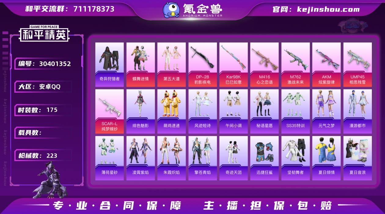 【7特效枪 蝶舞迷情 第五大道】可改实名 7特效枪 2粉装 175套装 223枪械 8王牌印记 69971热力值 DP-28-的影疾电[5级] Kar98K-巳巳如意[5级] SCAR-L-纯梦嫁纱[6级] UMP45-相思残雪[7级] M762-激战未来[7级] M416-心之恋语[7级] AKM-炫紫旋律[6级] 蝶舞迷情 第五大道 N5790 和平精英买号永久包赔带二次营地ID:482839054