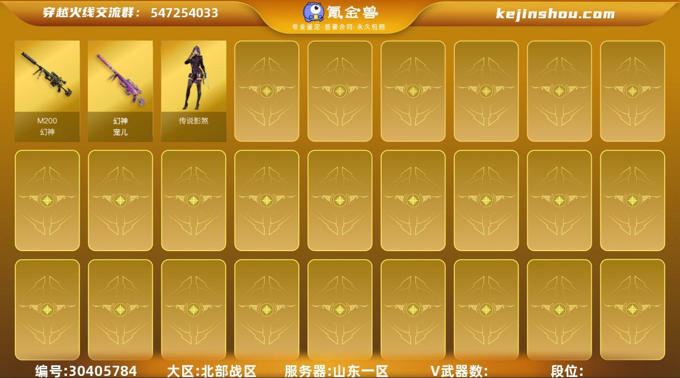 湖北一区-82V-13王者武器数-6炫金武器数 【传说武器】:传说夜影 【热门武器】:传说夜影,QBZ03-金色蔷薇,M200-幻神,白虎-电玩蓝兔,M4A1-黑骑士*2,汤姆逊-烈龙*3,加特林-炼狱*2,沙鹰-修罗,金刚伞 【王者炫金武器】:王者之决,炫金超新星*3,炫金天龙*3 【音效卡】:天神-动感闪耀 音效卡,Barrett-毁灭音效卡 【皮肤】:雷神-荣耀之魄,雷神-烈虎皮肤,雷神-机甲刑天皮肤,雷神-宇航兔皮肤,雷神-维纳斯皮肤,火麒麟-AG战队皮肤,火麒麟-雷神,火麒麟-平天大圣,火麒麟-百城,毁灭耀金皮肤,毁灭-黑曼巴 皮肤,黑骑士-破浪10年皮肤,战神-粉色甜心皮肤,AK47-B-常胜将军-曹操*2,AK47-B-常胜将军-刘备,AK47-B-常胜将军-孙权*2,天龙-能量核心,炼狱-月 皮肤,屠龙-荣耀之锋,麒麟刺-月皮肤 【角色】:魅影,炫,晴雅,王者葵-惊若翩鸿,乔伊教练,空,暗夜-X,北极狐-X,初恋灵狐,电竞少女,芳心审判者,风暴女,虎妞,嘉年华灵狐,兰-空鹰,兰妹妹,猎狐者-追月,灵狐-花神,灵狐者-七夕宝贝,灵狐者-职业经理,龙儿-小淘气,曼陀罗-X,曼陀罗-礼服,潘多拉-X,赛斯-X,兔囡囡,维纳斯,雪莉杨-摸金校尉,樱-战斗天使,影武者-X 【人偶武器】:M4A1-雷神-精英刀锋,AWM-灵狐-15周年嘉年华,深渊终结者手雷,闪光弹-貂蝉,高爆手雷-大乔,迷你超能女侍 【挑战大师】:神圣爆裂者III,激光毁灭者III-白马银枪 【英雄级武器】:M4A1-千变*2,AK47-火麒麟,M4A1-雷神*5,M4A1-黑骑士*2,AK12-天启,AK47-黑鲨,M4A1-龙血*2,无影-神兵利器,M4A1-玫瑰精灵*2,QBZ03-金色蔷薇,烈火-动感闪耀,AK-47-猩红传说,王者火魄-觉醒版,AK47-B-常胜将军,QBZ-03-王者蔷薇-觉醒版,白虎-电玩蓝兔,白虎之魄-觉醒版,Barrett-毁灭*2,Barrett-极光,M200-幻神,Barrett-朱雀,王者之光-觉醒版,加特林-炼狱*2,汤姆...