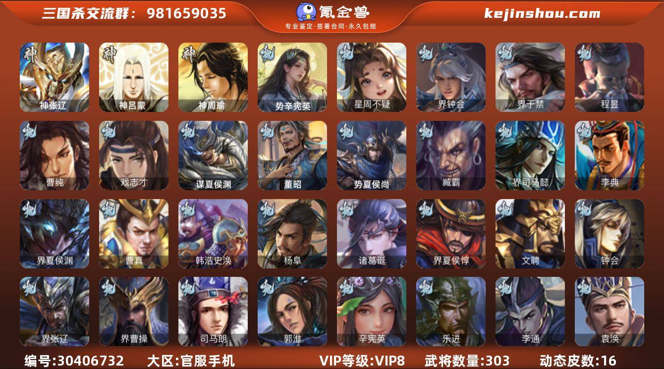 VIP等级:VIP8 官阶:骠骑将军 史诗武将数量:24 动态皮肤数量:16 宝珠数量:0 将魂数量:513 卖家说:年卡300多天,玉龙文鸯,金龙势辛宪英和橘子妹,大宝