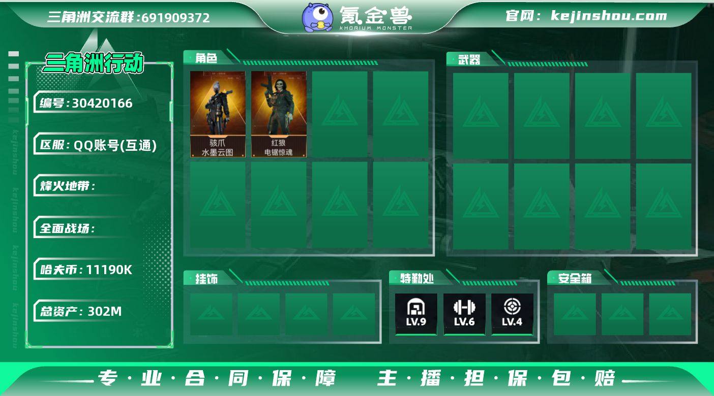 S697总资产302M,哈夫币1119w,近战1 枪皮数量50,骇爪-水墨云图/红狼-电锯惊魂,战场等级1军士长, 行动等级60铂金,安全箱等时效性道具请以游戏内数据为准,详情请看图