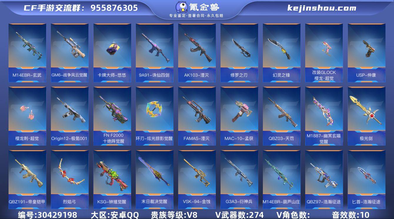 贵族等级:V8 王者武器数:29 v武器数:274 怒至尊,心至尊 卖家说:黑龙魂,王毅,王势,仁德慈套装等等……枪基本上都有皮肤和音效……另附带王者v7……