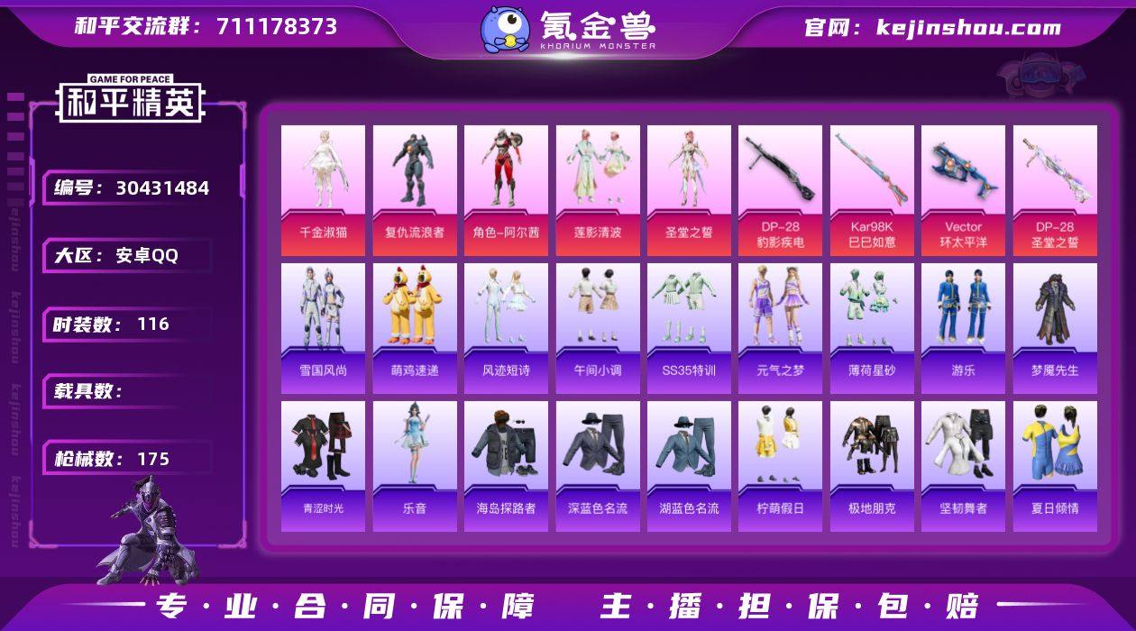 【Vector-环太平洋[7级] DP-28-圣堂之誓[7级] 】可改实名 4特效枪 5粉装 116套装 175枪械 Kar98K-已已如意[5级] DP-28-豹影疾电[5级] 千金淑猫 圣堂之誓 莲影清波 阿尔茜 复仇流浪者 雪国风尚 炫彩糖果 风迹短诗 午间小调 薄荷星砂 -元气之梦 萌鸡速递 王牌印记10 热力值54261 N6900 和平精英买号永久包赔带二次营地ID:915300437