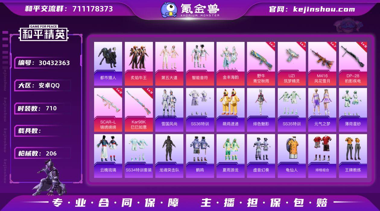 热力值:65920 时装数:710 枪械数:206 战备数:144 游戏等级:65 卓越印记:1 传奇印记:0 绝世印记:0 炙焰牛王,第五大道,金丰海韵,智能音符 七级M416-风花雪月,七级UZI-筑梦精灵,七级野牛-青空秋雨,五级DP-28-豹影疾电,五级Kar98K-巳巳如意,五级SCAR-L-锦绣绵绵 碧影闪光降落伞,垂柳戏鸭降落伞,怪笑疯兔降落伞,蓝莓炮弹降落伞,太空嘟嘟降落伞,天星战神降落伞,未来歌姬降落伞,星穹咏叹调降落伞 雪国风尚,SS36特训,绯色魅影,萌鸡速递,SS35特训,元气之梦,薄荷星砂,云魄琉璃,SS34特训套装,暗夜傀儡,暗夜魅影,冰川特警,冰冻风暴,缤纷果语,暴风机械师,滨海假日,冰河战士,白糯汤圆,白色伏地魔,贝斯之夜,白熊同盟,春光漫游,长空猛禽,潮流先锋,春日漫步,晨曦薄雾,顶瓜瓜,蝶变,大橘大利,呆萌铁蟹,多纳泰罗,都市猎人,都市魅力,飞驰魅影,绯格组合,疯狂小兔子,福星高照,飞行日记,龟仙人,光之冒险,海岛探路者,鹤鸣,虎虎生威吉莉,湖蓝色名流,活力之心,荷畔雨呱,黑色伏地魔,黄色伏地魔,黄色名流,黄色运动,红色运动,幻世战舞者,和煦暖阳,幻影武者,绝对偶像,军刀雅典娜,酒红色名流,惊鸿侠骨,橘黑制服,娇憨猪猪,竞技达人朋克,竞技名士,坚韧舞者,极速红龙,极速竞梦,街头潮人,街头风暴,锦衣飞扬,金耀舞者,酷潮明星,空岛之星,快闪甜心,空投萌叽,蓝彩潮人,龙的传人,灵公主,龙魂突击队,猎鹰,冷酷挑战者,六六大吉,浪漫假日,猎梦纪元,蓝色守护者,蓝色运动,莱茵河畔,恋语绒绒,冷焰舞者,漫步者,猛禽,萌黄之夏,魅力单车,麻辣教官,懵萌河马,萌趣咩咩,萌趣颜团子,明鸳圣池,弄潮海豚,霓虹极客,霓虹街区,柠萌假日,牛气冲天,牛气满满,暖心熊熊,破蛋小黄鸡,破晓战魂,青春校园,轻风白浪,绮丽涂鸦,青年教官,青涩时光,骑行爱好者,青玉碎影,瑞龙福将,荣耀,人气偶像,燃烧卡路里,热血青春,时空追击者,深蓝色名流,沙漠兵团,沙漠毒蛇,神气柴柴,SS15特训,SS16特训,SS17特训,SS18特训,SS19特训,SS20特训,SS21特训,SS22特训,SS23特训,SS24特训,SS25特训,SS26特训,SS27特训,SS28特训,SS29特训,SS30特训套装,SS31特训套装,SS32特训套装,SS33特训套装,探宝勇士,涂山之恋,特训学院,甜心亚梦,团圆交子,田园牧歌,特种颜团子,特战装甲,完美偶像,王牌教练,炫蓝之夏,旭日情侣,夏日倾情,夏日音浪,血色贵族,香桃花海,星途旅人,核芯基因,虚音幻奏,夏雨游龙,异彩先驱,耀粉歌者,银尘,雨林探路者,音速流光,玉兔迎春,野性战魂,野性战心,鹰眼刺客,夜莺强袭者,战地督导,棕色飞行服,灼焰舞者 PKM-啾咪啾咪,M762-登顶巅峰,MK12-乌木金纹,UMP45-极意拳锋,AKM-霓彩脉冲,Famas-霓彩脉冲,Mk14-紫晶流影,SLR-霓彩脉冲,SVD-霓彩脉冲,十字弩-异瞳寒姬,信号枪-异瞳寒姬,破片手榴弹-拽到爆炸,P90-玩趣呆呆,AC-VAL-彩虹甜喵,AC-VAL-快闪甜心,AC-VAL-天降萌叽,AC-VAL-甜心亚梦,AKM-彩虹符号,AKM-虎虎生威,AKM-龙的传人,AKM-萌趣颜团子,AKM-霓虹街区,AKM-夜灯,AKM-影袭,AKM-灼热熔岩,AKS-74U-鸡智如我,AUG-天降萌叽,AUG-耀粉歌者,AWM-恐龙拽拽,爆炸猎弓-惊鸿侠骨,爆炸猎弓-雪月幻音,DBS-彩虹符号,DBS-时空追击者,DBS-甜心亚梦,DP-28-彩虹符号,D