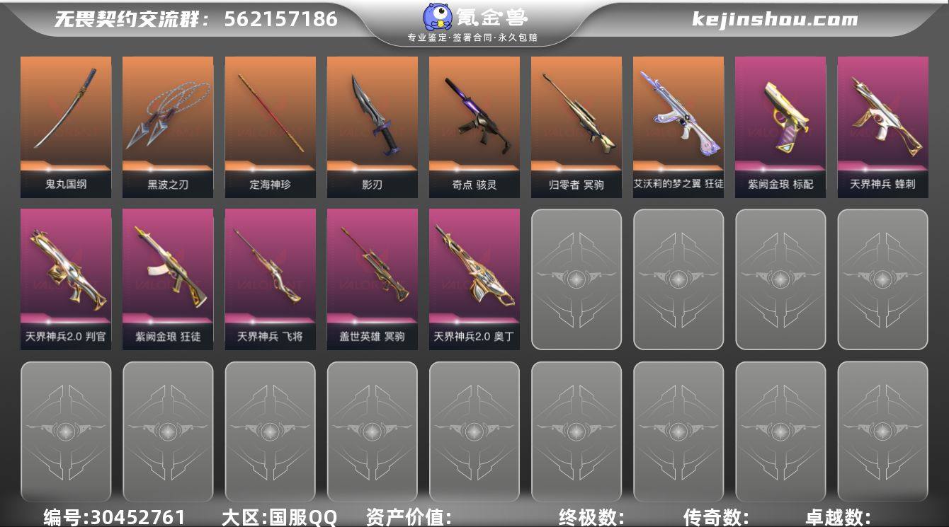 【佩枪皮肤】:鬼魅-奇点//2.0,正义-掠影,狂怒-般若假面//2.0,正义-西部未来,正义-奇点,鬼魅-天界神兵,标配-紫阙金琅