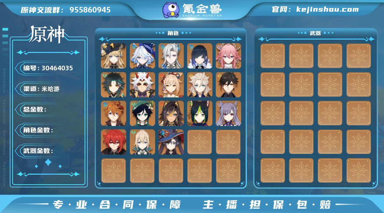 54金 60冒险等级 6金武器 48金人物 无绑定邮箱 天空之脊 雾切之回光 磐岩结绿 天空之刃 阿莫斯之弓 天空之卷 5命莫娜 3命神里绫华 2命夜兰 2命刻晴 2命迪卢克 1命枫原万叶 1命玛薇卡 1命希诺宁 1命那维莱特 1命琴 1命迪希雅 1命提纳里 菈乌玛 阿蕾奇诺 芙宁娜 荒泷一斗 魈 温迪 宵宫 钟离 闲云 杜林 梦见月瑞希 八重神子 阿贝多 瓦雷莎 达达利亚 N6933