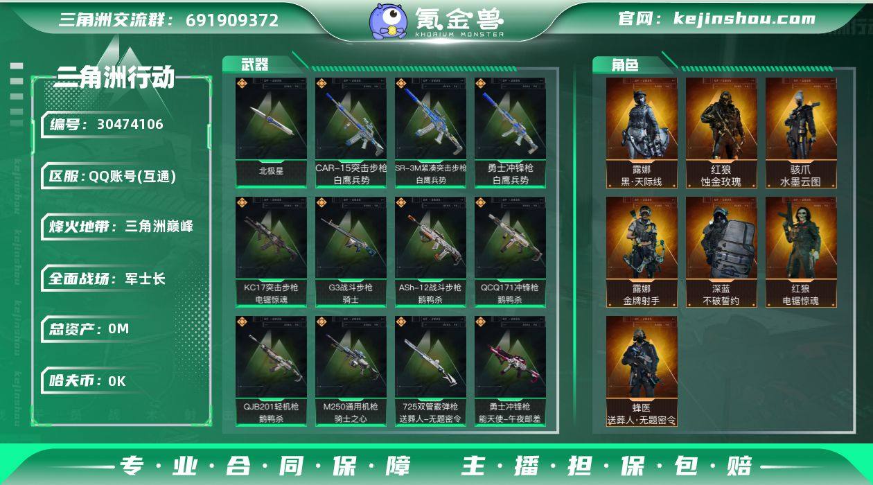 tx1361 总资产326M 烽火等级60级 天才少年徽章 红狼蚀金玫瑰捆绑包 骇爪水墨云图捆绑包 露娜黑天际线捆绑包 北极星捆绑包 白鹰兵势捆绑包 M700-白玫瑰 M7-零度协议 鹅鸭杀捆绑包 红狼电锯惊魂捆绑包 捞点薯条捆绑包 特斯拉线圈捆绑包 特勤处高等级(仓库9体力7负重7) 部门高等级 收藏室多大红(52个) 非洲之心 S5S6S7赛季通行证 蜂医-送葬人 深蓝-不破誓约 露娜-金牌射手 仓库多大红 120发AWM子弹 S7赛季3x3箱子 2M纯币 (可二次实名)