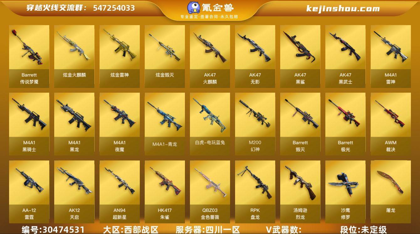 M6825/西部/四川一区/可排位/142v/2传说/传说暗裔/传说梦魇/【/幻神三件套/双幻神/幻神宠儿/幻神CFS2022/幻神音效卡/】/【/竞技荣光套/M200竞技荣光/柯尔特竞技荣光/*2/擎天竞技荣光*3/】/王者星神/觉醒版/6盘龙/6烈龙/3修罗/斯泰尔蝴蝶/朱雀/青龙/【/金色蔷薇三件套/QBZ金色蔷薇/金色蔷薇枪娘阿敏/QBZ金色蔷薇音效卡/】/白虎电玩蓝兔/QBZ王者蔷薇/觉醒版/夜魔套装/破空枪刃夜魔/COP幻灵/双面神/集束激光超越MAX/暴君乱世超越Max/地狱征服者超越Max/异变清道夫/【/四防角色/电竞教官云悠悠/荒漠琉璃/王者瞳闭月羞花/王者葵惊若翩鸿/王者玲珑小乔/王者沙漠玫瑰/】/【角色】/樱/战地猎狐/葵阿尔法武装/奇洋探员/乔伊教练/蛇隐宗/修道士/云海玲珑/【/音效卡/黑龙音效卡/屠龙动感闪耀音效卡/烈火动感闪耀音效卡/极光音效卡/毁灭音效卡/火麒麟音效卡/雷神音效卡/黑骑士音效卡/炼狱百战金芒庆典舞曲音效卡/】/【枪皮】/雷神机甲刑天/火麒麟白虎/黑骑士伏羲/火麒麟传奇EVEN/黑骑士冠军之势/火麒麟CFS2018/【小人枪】/朱雀蛇隐宗/火麒麟灵狐/*2/裁决雪莉杨/毁灭孙三炮/天龙曼陀罗/*2/海滩汪汪巴雷特/M37葵/【王者武器】/王者之城/王者之心/王者风势/王者之戮/王者之魄/王者之武/王者蔷薇/王者之力/【炫金武器】/炫金火麒麟/炫金雷神/炫金毁灭/永久AC/找回包赔/