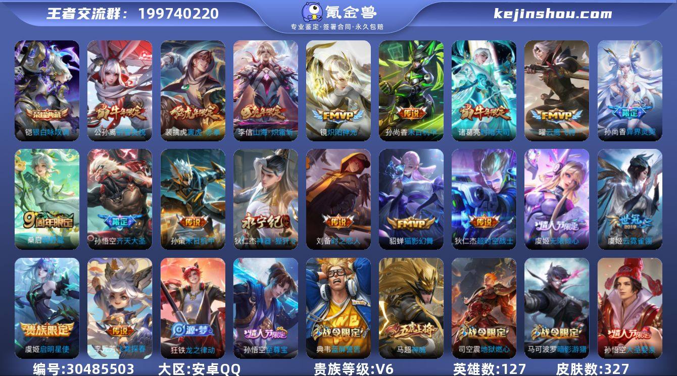 安卓手Q514区327皮1典藏19传说0无双 营地ID458912806(可二次)V6永恒钻石IV 【荣耀典藏】:银白咏叹调【优质限定皮肤】:山海·炽霜斩,祈雪灵祝,至尊宝,神威【传说皮肤】:鸣野蒿,无限倾心,炽阳神光,启明星使,齐天大圣,山海·炽霜斩,神器·狴犴令,超时空战士,云霓雀翎,飞鸢探春,末日机甲,时之恋人,寅虎·赤拳,异界灵契,末日机甲,祈雪灵祝,时雨天司,猫影幻舞,云鹰飞将【特殊英雄】:嬴政,敖隐,【史诗皮肤】:圣诞狂欢,暗渊魔法,妄想食味,德古拉伯爵,龙之律动,茶境仙,化蝶舞,圣诞恋歌,暗夜贵公子,月团寄思,紫霞仙子,摇滚巨星,苍穹之光,蓝屏警告,蔬乡物语,龙骑士,曙光守护者,荣光圣徽,燃音魔法,舞动绿茵,地狱燃心,百解令,冰雪圆舞曲,心灵战警,驭风魔法,缤纷独角兽,奇幻香踪,赏金猎手,功夫厨神,星界游侠,朱雀志,地狱岩魂,节奏热浪,山海·玄木吟,电玩小子,顽趣,无心,超时空战士,五谷丰年,水晶猎龙者,电玩高手,天才门将,吟游魔法,永昼,心灵骇客,火炮绅士,晚萤,星夜王子,猫狗日记,寅虎·御盾,乘风破浪,逐浪之夏,黎明之约,青春决赛季,原初追逐者,拒霜思,真爱魔法,航海奇遇记,优雅恋人,女仆咖啡,胡桃异想国,魔术师,暗隐猎兽者,云间偶戏,未来纪元,默契交锋,特工魅影,霸王别姬,修罗,纤云弄巧,李小龙,幽灵船长,暗影游猎,皇家上将,黄金分割率,至尊宝,千年之狐,水果甜心,魅语,银河之约,梁祝,鹰眼统帅,鬼剑武藏,大圣娶亲,遇见飞天,末日机甲,魅力维加斯,高山流水,游