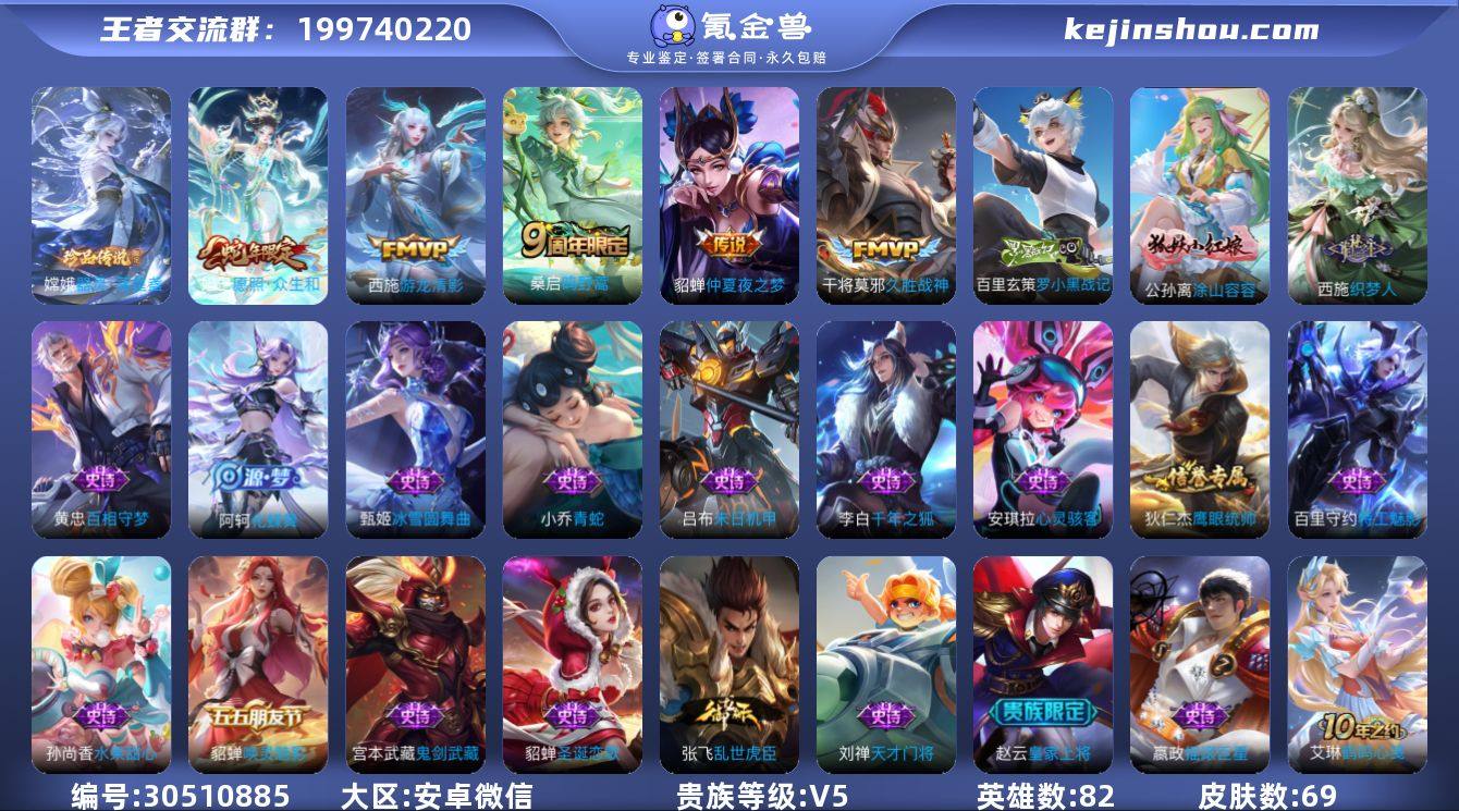 实名: 不可修改 贵族等级: V5 英雄数: 82 皮肤数: 69 珍品传说: 器灵·落星盏 传说皮: 久胜战神,仲夏夜之梦,游龙清影 限定皮: 鸣野蒿,愿照·众生和