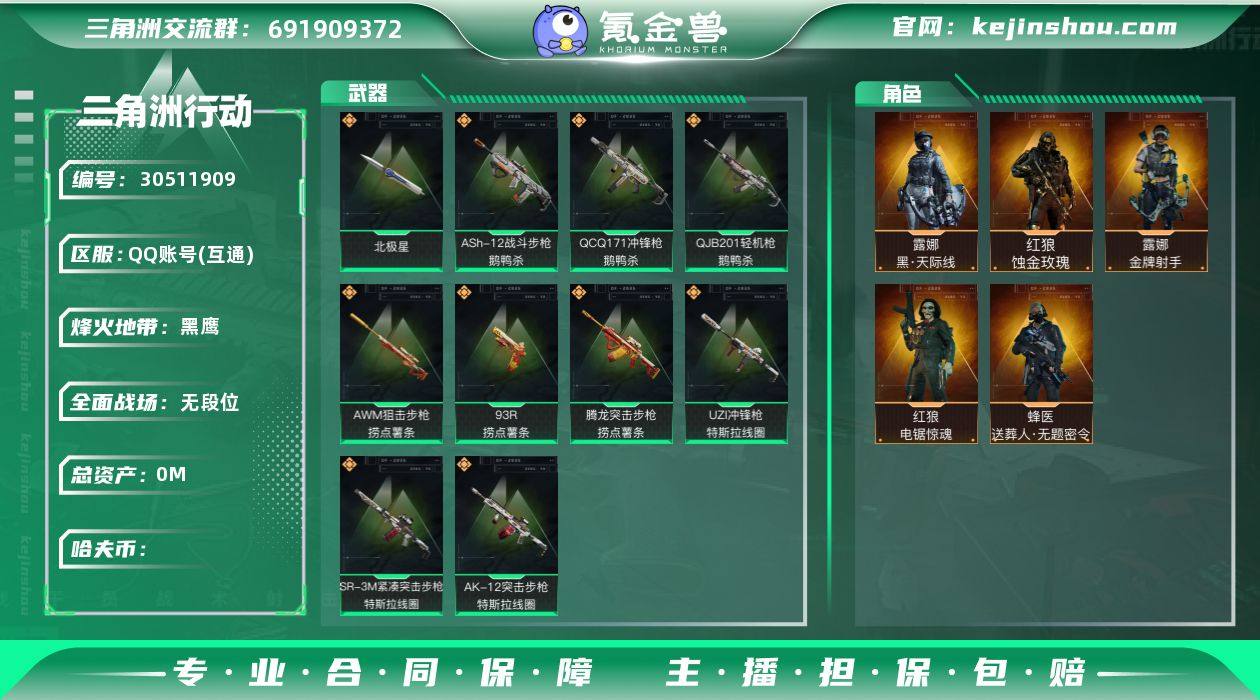 hf11971总资产193m+s7赛季3x3安全箱+蚀金玫瑰全套+电锯惊魂红狼全套+黑天际线全套+鹅鸭杀全套+捞点薯条全套+特斯拉线圈全套+北极星刀+s5s7赛季通行证+烽火等级60+特勤部门等级满体满负重+守信不予+永久包赔