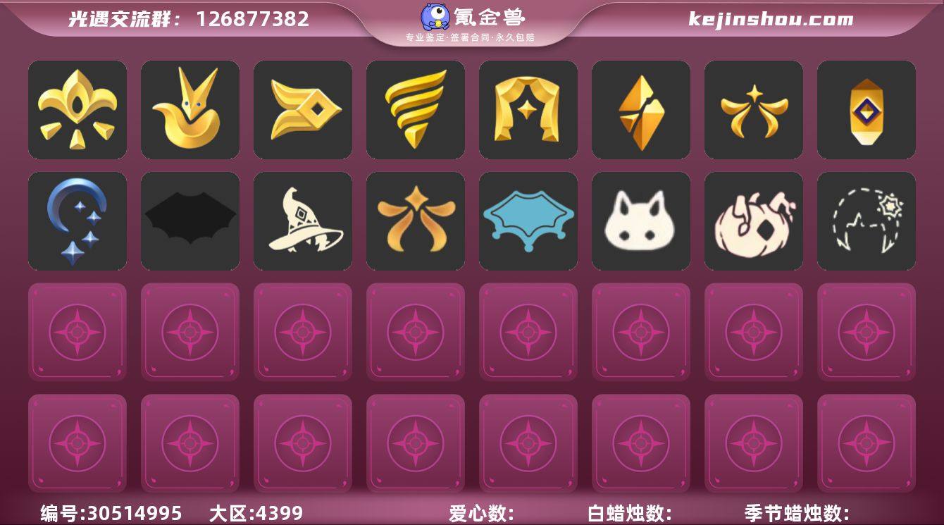 账号类型: 手机账号 季节已毕业: 梦想季,小王子季,风行季,潜海季,表演季,破晓季,欧若拉季,集结季,夜行季,追忆季,归巢季,九色鹿季,筑巢季,二重奏季,姆明季,彩染季,青鸟季,双星季 完成地图: 晨岛,云野,雨林,霞谷,暮土,禁阁 珍稀物品: 白枭,透明蝶翼斗,玫瑰花,彩虹围巾 礼包: 蝙蝠套,巫师,围巾,星球斗,欧若拉之翼,九色鹿角,莲花斗,音乐桌,大耳狗装扮,绊爱,大铁头,鹿角,运动鞋,秋千,茶桌,白绒金,瑞雪,福娃,跷跷板,小船,吉他,风之旅人,人声乐器,雪花球,橘子,贝壳,红伞,兔子,南瓜,雪花,竖琴,电吉他,水母,猫套,猫背饰,星月头饰,彩虹耳钉,彩虹耳机,新年裤,蝴蝶结,魔法棒,奥利奥,四叶草,暗彩装扮,向日葵套,小提琴,爱心眼镜,火焰眼镜,透明蛛丝,新年耳钉,创始人,海蓝波浪发型,飞鸟纸伞,日光耳环,满月耳坠,优雅三件套,姆明饰品套装,向日葵连衣裙,龙鳞束身长袍,仙境茶会门扉礼包,爱丽丝围裙套装礼包,妮妮斗篷,衔福献瑞礼包,献瑞折扇礼包,心心相印发饰礼包,青衫落拓礼包,周年影院套餐礼包,线框斗篷礼包,活力海牛礼包,记忆水晶礼包 裤子: 武士裤,背带裤,搓澡巾,击剑裤,妮妮裙子,王子服,蓝绿裤,飞天裤,筑巢季·裤子,青鸟尊贵蓬头裤子 面具: 凤凰面具,贴花面具,呼吸面具,夜行毕业面具,黄眉企鹅面具,辉光羚羊面具 面饰: 红耳机,黑框眼镜,青鸟毕业面饰 项链: 围巾 发型: 归巢毕业发型,若笠,虚荣,单侧绑发,小王子发型,留辫蘑菇头,飞天盘发,海蓝波浪发型 头饰: 行军锅头盔,羽毛发饰,平顶帽 斗篷: 海洋斗,蟑螂斗,绿芽,粉红绒毛斗篷,遥鲲斗篷,黄色连帽披风,燕尾斗篷,冥龙斗篷,彩染围巾斗篷,青鸟毕业斗篷 配饰: 雨伞,筑巢季·小手办,高音钢琴,姆明抱枕,小红伞,相机,玫瑰花,二重奏挂画,蓝色手碟,鲲灯 亮点: 【优质装备】:表演季,白枭(帝企鹅发),武士裤,青鸟尊贵蓬头裤子(蓝色燕尾服),梦想季,小王子季(王子季),风行季,潜海季,破晓季,透明蝶翼斗...
