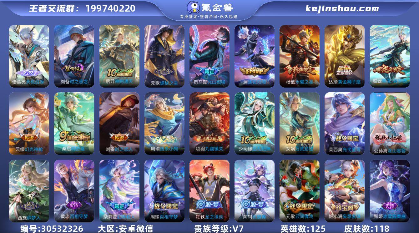贵族等级:V7 典藏皮肤数:0 珍品无双皮肤数:0 无双皮肤数:1 珍品传说皮肤数:0 传说皮肤数:10 史诗皮肤数:33 皮肤数:118 英雄数:125 段位:钻石 卖家说:省六司马懿万战诸葛亮