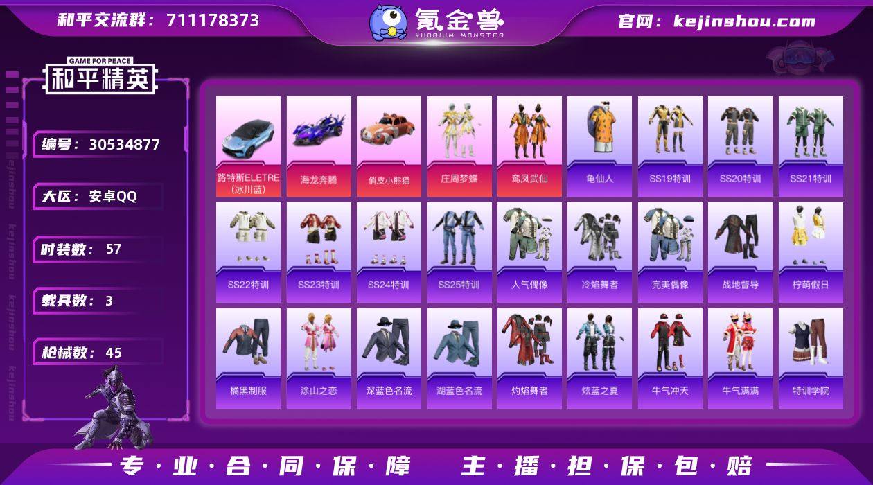 【AZH2202】安卓 手Q【2粉 3载具俏皮小熊猫】2粉装-0特效枪-3载具-1粉色飞行器-16938热力值-2王牌印记-57套装-45枪皮 【热门品类】:套装-龟仙人 【粉色套装】:粉装-庄周梦蝶,粉装-鸾凤武仙 【粉色载具】:路特斯ELETRE(冰川蓝),海龙奔腾,俏皮小熊猫 【粉色飞行器】:庄周梦蝶飞行器 【粉色降落伞】:百万伏特降落伞,橘柚倾心降落伞,垂柳戏鸭降落伞,仲夏莫吉托降落伞 【稀有套装】:套装-龟仙人 【稀有枪皮】:AKM-环太平洋,AKM-破晓战魂,AKM-龙的传人,SCAR-L-玉兔迎春,SCAR-L-红色方程式,M416-糯团青竹,M416-紫翼圣骑,AUG-天降萌叽,AUG-耀粉歌者,QBZ-彩虹符号,QBZ-飞驰魅影,M762-天降萌叽,M762-彩虹甜喵,Mk47-百万伏特,AC-VAL-天降萌叽,蜜獾-垂柳戏鸭,蜜獾-天降萌叽,蜜獾-娇憨猪猪,UZI-娇憨猪猪,UMP45-涂山之恋,UMP45-生命誓言,UMP45-蓝色火焰,P90-飞驰魅影,Kar98K-飞驰魅影,AWM-垂柳戏鸭,VSS-彩虹符号,Mini14-涂山之恋,Mini14-金鼠迎春,SLR-娇憨猪猪,S686-橘柚倾心,S1897-炫彩节奏,S1897-飞驰魅影,S12K-玩趣呆呆,S12K-娇憨猪猪,SPAS-12-太空嘟嘟,DP-28-彩虹符号 【其他套装】:套装-SS19特训,套装-SS20特训,套装-SS21特训,套装-SS22特训,套装-SS23特训,套装-SS24特训,套装-SS25特训,套装-人气偶像,套装-冷焰舞者,套装-完美偶像,套装-战地督导,套装-柠萌假日,套装-橘黑制服,套装-涂山之恋,套装-深蓝色名流,套装-湖蓝色名流,套装-灼焰舞者,套装-炫蓝之夏,套装-牛气冲天,套装-牛气满满,套装-特训学院,套装-猎鹰,套装-猛禽,套装-玉兔迎春,套装-白色伏地魔,套装-破蛋小黄鸡,套装-竞技名士,套装-竞技达人朋克,套装-红色运动,套装-绮丽涂鸦,套装-绯格组合,套装-耀眼新星,套装-耀粉歌者,套装-荣耀,套装-蓝彩潮人,套装-蓝色运动,套装-...
