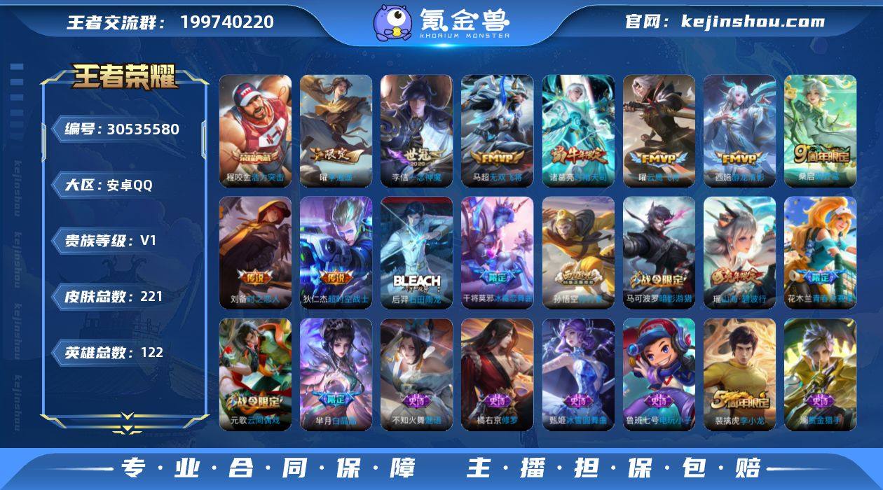 安卓Q-V0-永恒钻石IV段位-122英雄-221皮肤-1典藏皮肤-9传说-61史诗【荣耀典藏】:程咬金活力突击【传说皮肤】:桑启鸣野蒿,马超无双飞将,西施游龙清影,曜李逍遥 ,诸葛亮时雨天司,曜云鹰飞将,李信一念神魔,刘备时之恋人,狄仁杰超时空战士【限定皮肤】:白起狰,狄仁杰阴阳师,赵云皇家上将,嬴政优雅恋人,嬴政白昼王子,庄周高山流水,高渐离死亡摇滚,孙膑天狼运算者,芈月重明,芈月白晶晶,吕布猎兽之王,元歌云间偶戏,夏侯惇朔风刀,甄姬游园惊梦,曹操烛龙,典韦穷奇,马可波罗暗影游猎,狄仁杰魔术师,狄仁杰万华元夜,达摩沙漠行僧,项羽海滩派对,老夫子醍醐杖,程咬金演武夺筹,兰陵王金庭之子,花木兰青春决赛季,亚瑟潮玩骑士王,孙悟空孙行者,牛魔御旌,李元芳云中旅人,虞姬霸王别姬,钟馗驱傩正仪,杨玉环遇见飞天,干将莫邪冰霜恋舞曲,雅典娜黎明之约,蔡文姬繁星吟游,太乙真人饕餮,鬼谷子原初探秘者,鬼谷子五谷丰年,诸葛亮时雨天司,苏烈千军破阵,百里玄策原初追逐者,弈星混沌棋,梦奇顽趣,沈梦溪大漠名商,明世隐疑决卦,裴擒虎李小龙,裴擒虎擒涛扼浪,狂铁御狮,米莱狄御霄,瑶山海碧波行,云中君纤云弄巧,伽罗天狼溯光者,盾山御銮,猪八戒西部大镖客,上官婉儿梁祝,嫦娥拒霜思,曜李逍遥 ,鲁班大师探海日志,镜匿光追影者,桑启海盐诗旅,艾琳女武神,张良古海寻踪,鬼谷子天穹祈灯【年限皮肤】:诸葛亮时雨天司,瑶山海碧波行【赛季限定】:白起狰,芈月重明,夏侯惇朔风刀,曹操烛龙,典韦穷奇,狄仁杰万华元夜,达摩沙漠行僧,老夫子醍醐杖,程咬金演武夺筹,兰陵王金庭之子,张良古海寻踪,牛魔御旌,李元芳云中旅人,钟馗驱傩正仪,雅典娜黎明之约,太乙真人饕餮,鬼谷子原初探秘者,苏烈千军破阵,百里玄策原初追逐者,弈星混沌棋,梦奇顽趣,沈梦溪大漠名商,明...