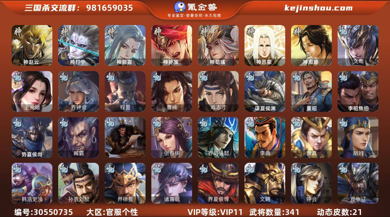 神赵云,神甘宁,神郭嘉,神孙策,神荀彧,王元姬,界钟会,曹纯,戏志才,程昱,谋刘备,谋赵云,沙摩柯,花鬘,董允,谋孙策,吴景,孙寒华,界徐盛,文鸯,十常侍,谋貂蝉,界沮授,左慈,苏飞,麹义,刘焉,沮授,界左慈,界李儒,杜预,兀突骨,神吕蒙,神周瑜,势夏侯尚,SP关羽,SP蔡文姬,乐进,曹昂,诸葛诞,朱灵,文聘,SP姜维,张春华,钟会,曹冲,郭淮,满宠,界王异,界曹操,界司马懿,界夏侯惇,界张辽,界许褚,界郭嘉,李典,曹真,韩浩史涣,陈群,曹叡,钟繇,司马朗,王基,李通,郭皇后,孙资刘放,辛宪英,界甄姬,吕虔,鲁芝,界典韦,界荀彧,界徐晃,界曹丕,界邓艾,张恭,界曹植,界满宠,界郭淮,辛毗,华歆,袁涣,崔琰,谋于禁,界曹休,胡班,李昭焦伯,谋夏侯渊,臧霸,唐咨,董昭,势陈到,SP孙尚香,关银屏,夏侯霸,马良,关兴张苞,廖化,界马岱,关平,简雍,刘封,界法正,界关兴张苞,界刘备,界关羽,界张飞,界赵云,界马超,SP徐庶,吴懿,周仓,张松,刘谌,夏侯氏,糜竺,马忠,李严,黄皓,界黄月英,界诸葛亮,赵统赵广,严颜,界伊籍,界庞统,界孟获,界姜维,界刘禅,吕...