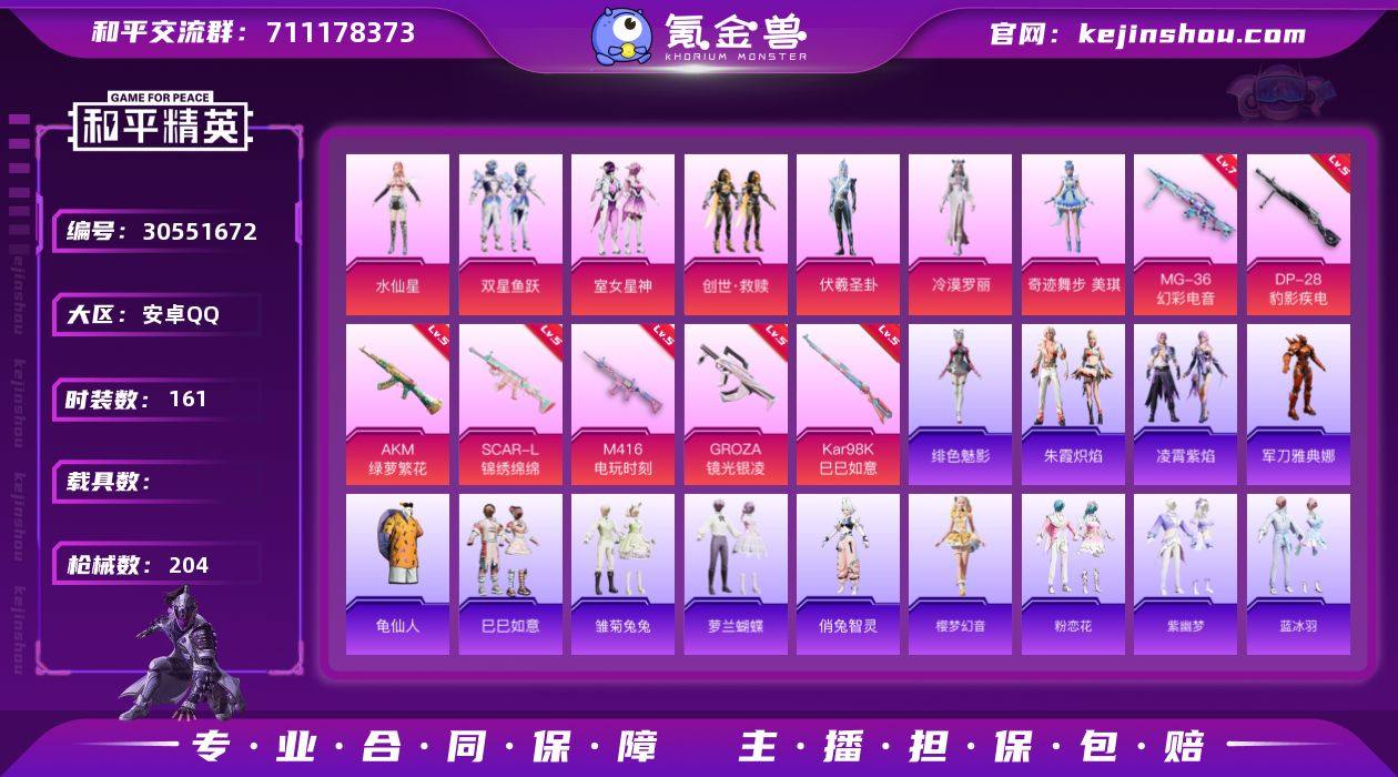 安卓 手Q-7粉装-7特效枪-0载具-1粉色飞行器-58831热力值-18王牌印记-161套装-204枪皮 【热门品类】:角色-军刀雅典娜,套装-龟仙人 【粉色套装】:角色-水仙星,粉装-双星鱼跃,粉装-室女星神,套装-创世·救赎,角色-伏羲圣卦,角色-冷漠罗丽,角色-奇迹舞步 美琪 【粉色枪皮等级】:AKM-绿萝繁花(五级),SCAR-L-锦绣绵绵(五级),M416-电玩时刻(五级),GROZA-镜光银凌(五级),Kar98K-巳巳如意(五级),DP-28-豹影疾电(五级),MG-36-幻彩电音(七级) 【粉色枪皮】:AKM-绿萝繁花,SCAR-L-锦绣绵绵,M416-电玩时刻,GROZA-镜光银凌,Kar98K-巳巳如意,DP-28-豹影疾电,MG-36-幻彩电音 【粉色降落伞】:炫光之旅降落伞,超新星降落伞,小叽联名款降落伞,金丰海韵降落伞,桃粉嫣然降落伞,宁雨蝶降落伞,荧海星豚降落伞,无垠阁降落伞,异瞳寒姬降落伞,极意拳锋降落伞,炫彩糖果降落伞 【稀有套装】:套装-龟仙人,套装-巳巳如意,套装-雪国风尚,套装-雏菊兔兔,套装-萝兰蝴蝶,角色-俏兔智灵,套装-樱梦幻音,套装-粉恋花,套装-紫幽梦,套装-蓝冰羽,套装-彩虹兔,套装-云朵鹅,套装-雪绒豹,套装-朱霞炽焰,套装-凌霄紫焰,角色-绯色魅影,套装-炫彩糖果 【稀有枪皮】:AUG-冰晶雪宝,AKM-2P战斗服款,AKM-江南烟雨,AKM-环太平洋,AKM-破晓战魂,AKM-虎虎生威,AKM-霓虹街区,AKM-龙的传人,M16A4-天使羽翼,M16A4-幻世战舞者,M16A4-红色方程式,M16A4-蓝色火焰,SCAR-L-夜灯,SCAR-L-炫彩节奏,SCAR-L-玉兔迎春,SCAR-L-红色方程式,M416-糯团青竹,M416-红色方程式,M416-绯红前夜,M416-蓝色火焰,GROZA-彩虹符号,GROZA-影袭,GROZA-田园牧歌,AUG-天降萌叽,AUG-耀粉歌者,AUG-绝对恒星,QBZ-彩虹符号,M762-天降萌叽,M762-彩虹甜喵,M762-彩虹符号,M762-绯红前夜,M762-云朵鹅,AC-VAL-天降萌叽,AC-VAL...