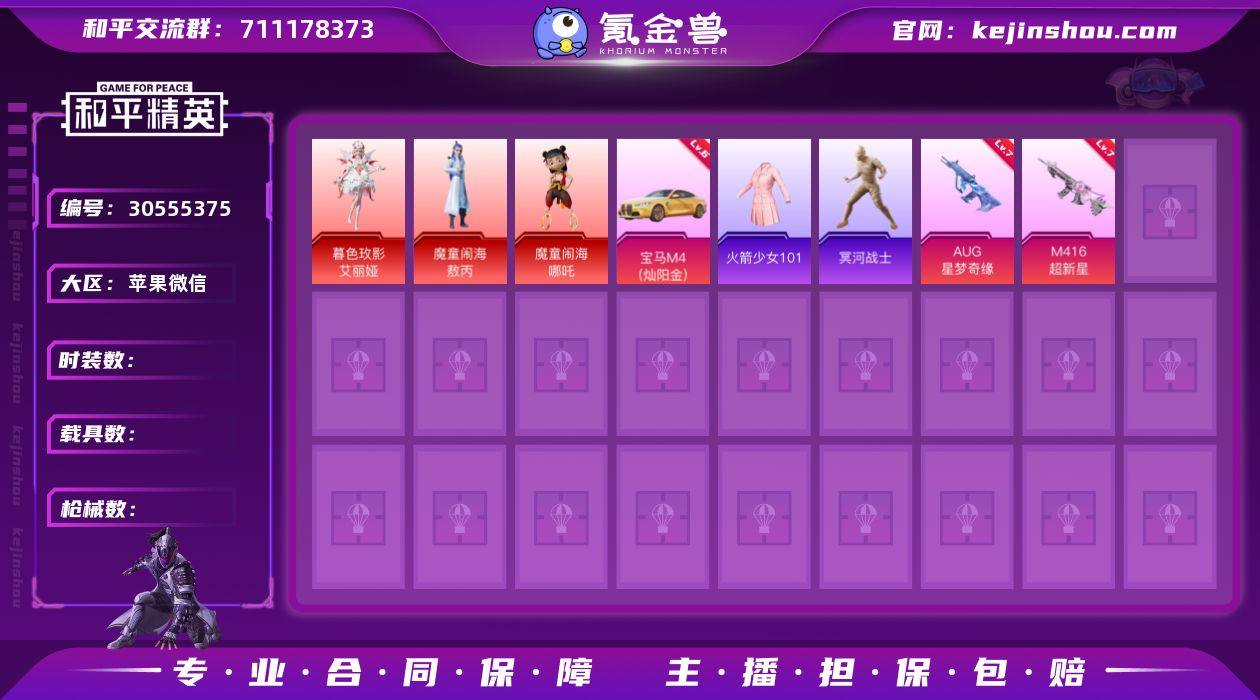 【特价出售/店主推荐】 【连体苹果 微信王者荣耀681皮肤130传说7典藏12无双】 苹果 微信-7神装-30粉装-39特效枪-13载具-21粉色飞行器-148208热力值-8王牌印记-155套装-262枪皮 【红色载具】:玛莎拉蒂MC20(幻星粉)(一级),玛莎拉蒂Quattroporte(幻星粉)(六级),玛莎拉蒂Grecale(幻星粉)(一级),宾利欧陆GT敞篷(深空蓝)(一级),冰辰御座(钻石蓝)(一级) 【红色神装等级】:魔童闹海-敖丙(一级),魔童闹海-哪吒(一级),灵猫魔法师-塞维尔(一级),圣域龙灵-瑞拉(一级),金蛇镇世-烛九(四级),盛世惊鸿-云鸾(一级),沙丘之主-图卡盟(一级) 【红色角色神装】:魔童闹海-敖丙,魔童闹海-哪吒,灵猫魔法师-塞维尔,圣域龙灵-瑞拉,金蛇镇世-烛九,盛世惊鸿-云鸾,沙丘之主-图卡盟 【热门品类】:粉装-怪诞乔克,粉装-梦幻火箭,粉装-缤纷油彩,套装-浪漫天命,套装-赤蝎幽灵,套装-火箭少女101,套装-都市猎人,套装-冥河战士,套装-派对舞王,套装-小丑鱼,角色-2P战斗服款,角色-忠猛周仓,套装-龟仙人,套装-暗影哥特,套装-浪漫波比,套装-萌熊伴侣,撬棍-龙胆亮银枪 【粉色套装】:粉装-数码大师,粉装-怪诞乔克,粉装-甜心巧克力,粉装-宝贝奶油派,粉装-天使彩虹糖,粉装-梦幻火箭,粉装-缤纷油彩,粉装-放客神游,粉装-新星烈龙,粉装-彩虹鹿灵,角色-洛天依,角色-初号机款机体服,粉装-赤焰黑爵,粉装-紫电风暴,粉装-霁雪冰心,粉装-冰川红玫,粉装-第五大道,超级赛亚人-孙悟空,角色-白勺歌姬,角色-呆萌星弥,角色-小可学妹,粉装-萌物绒绒,角色-圣堂之誓,粉装-蜜语绒猫,角色-烟云彩露,角色-月下星之子,角色-智耀战神,角色-罗征,角色-奇迹舞步 美雪,角色-羊梦糖心 【粉色枪皮等级】:AKM-甜心宝贝(六级),M16A4-晶梦幻蝶(一级),SCAR-L-梦幻火箭(一级),SCAR-L-金蛇镇世(一级),SCAR-L-魔...