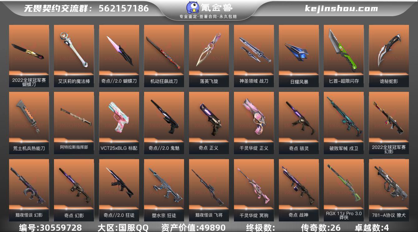 传奇数:26 卓越数:4 皮肤资产价值:49890