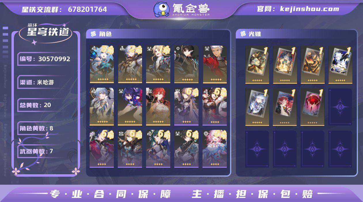 开拓等级:70 开拓者性别:女 总黄数:20 星轨专票:80 五星角色数:8 3命刻律德菈,2命白厄,1命彦卿,0命丹恒·腾荒,0命Archer,0命星期日,0命希儿,0命姬子 五星光锥数:7 1精纵然山河万程,1精金血铭刻的时代,1精理想燃烧的地狱,1精黎明恰如此燃烧,1精回到大地的飞行,1精银河铁道之夜,1精记一位星神的陨落 邮箱状态:未绑定 卖家说:极品欧皇号 卡池垫了70号上还有70抽