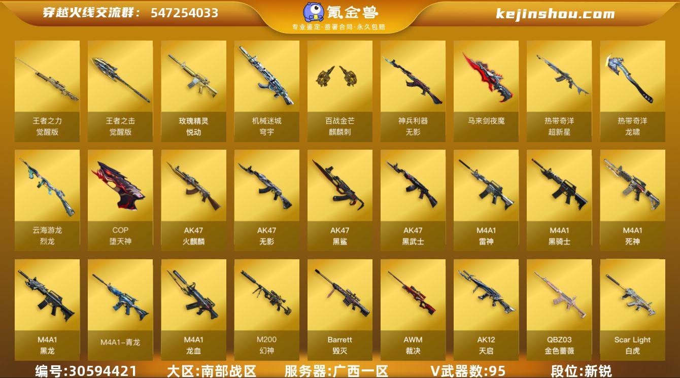 【FC-gMcqBE】四防艾莉莎云悠悠王者葵/幻神 宠儿 N9/竞技套/白虎3皮 qbz金色蔷薇冠军之薇/6盘龙炼狱 小刚6烈龙死亡之眼/冠军之特*4/usp雷暴 神功天巧/cop堕天神/冠军之刃/毁灭雷神冠军三件套/ 广西一区,等级102,王者武器6,炫金武器1,V武器95, 【英雄角色】传说艾莉莎,零,樱,电竞教官-云悠悠,职业选手,云海玲珑,猎狐者,王者樱-热浪之夏,王者葵-惊若翩鸿, 【V武器】M200-幻神,M200-竞技荣光,Barrett-毁灭,AWM-裁决,Scar Light-白虎,QBZ03-金色蔷薇,RPK-盘龙,加特林-炼狱,汤姆逊-烈龙,烈龙-云海游龙,柯尔特-冠军之特,柯尔特-竞技荣光,USP-雷暴,USP-神工天巧,COP-堕天神,Knife-冠军之刃,barrett-金色蔷薇,M4A1-雷神,M4A1-黑骑士,M4A1-黑龙,M4A1-青龙,M4A1-龙血,M4A1-死神,AK47-火麒麟,AK47-无影,AK47-黑鲨,AK47-黑武士,烈火-动感闪耀,AK12-天启,无影-神兵利器,黑武士-锦绣游龙,机械迷城-穹宇,沙鹰-修罗,沙鹰-天神,修罗-云海游龙,天神-动感闪耀,屠龙,麒麟刺,龙啸,擎天,擎天-竞技荣光,屠龙-动感闪耀,屠龙-云海游龙,马来剑-夜魔,唐刀-古蛇迷踪,龙啸-烈火龙威,擎天-云海游龙,麒麟刺-百战金芒,高爆手雷-夜魔,闪光弹-夜魔,烟雾弹-夜魔,高爆手雷-竞技荣光,闪光弹-竞技荣光,烟雾弹-竞技荣光,高爆手雷-古蛇迷踪,烟雾弹-古蛇迷踪,超新星-热带奇洋,龙啸-热带奇洋,高爆手雷-雷霆王者,手雷-云海游龙,手雷-热带奇洋,手雷-动感闪耀,M4A1-再燃火线,龙啸-云海游龙, 【王者武器】玫瑰精灵-悦动,超新星-悦享-觉醒版,王者之力-觉醒版,王者之击-觉醒版,闪光弹-雷霆王者-觉醒版,高爆手雷-雷霆王者, 【狙击枪稀有皮肤】幻神-宠儿-2021MVP,M200-幻神-N9-2022MVP,毁灭-星空,毁灭-航天科技皮肤,毁灭-冠军之怒,毁灭-暗月,天龙-CFSTAR,极光-能量核心...