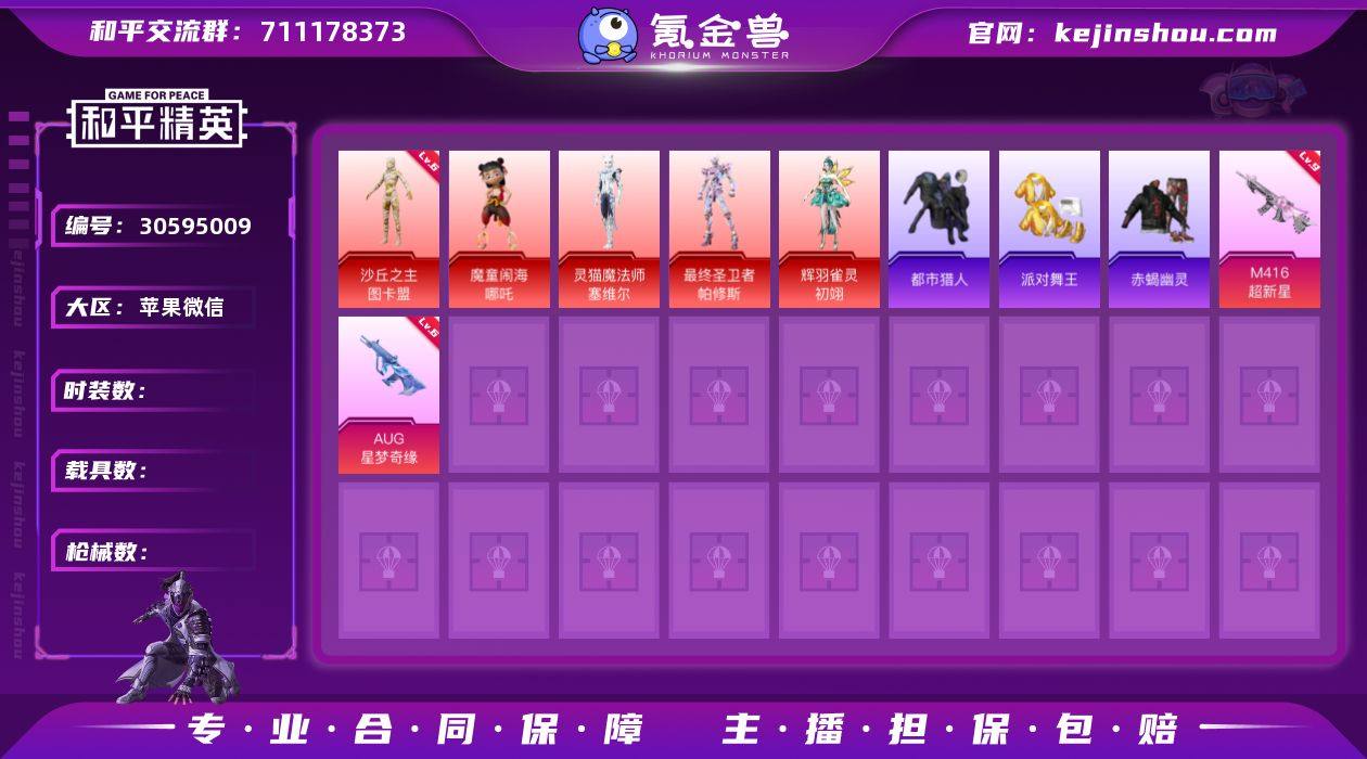 【六级图卡盟 战神框 九级至情至圣 盖世英雄 九级枪多】【男神套】【萌熊 酷熊背包 胖达头盔】【还有3个枪械升级币没用】苹果 微信-无敌战神框-4神装-73粉装-43特效枪-15载具-26粉色飞行器-308658热力值-28王牌印记-489套装-584枪皮 【红色载具】:玛莎拉蒂Quattroporte(幻星粉)(六级),保时捷911 敞篷版(小暴龙)(五级),保时捷Cayenne(星光璃)(四级) 【红色神装等级】:魔童闹海-敖丙(一级),魔童闹海-哪吒(一级),镜域双华-欧若拉(一级),沙丘之主-图卡盟(六级) 【红色角色神装】:魔童闹海-敖丙,魔童闹海-哪吒,镜域双华-欧若拉,沙丘之主-图卡盟 【热门品类】:粉装-怪诞乔克,粉装-雪国幻梦,粉装-梦幻火箭,粉装-童趣迷兔,粉装-缤纷油彩,绝对防御上衣,套装-寒蝎幽灵,套装-浪漫天命,套装-赤蝎幽灵,套装-都市猎人,套装-冥河战士,套装-派对舞王,套装-深海小丑鱼,套装-小丑鱼,套装-奇异狩猎者,角色-军刀雅典娜,套装-胖达团团,套装-胖达圆圆,套装-天网终结者,套装-金羽特工,套装-忍者信条,套装-星河浪客,套装-暗夜行者,套装-浪客战士,套装-动感兔斯基人偶服,套装-AG追光队服,角色-2B战斗服款,套装-龟仙人,套装-潮萌小黄鸭,套装-暗影哥特,套装-浪漫波比,套装-粉红小猪,套装-红红火火,套装-糯粉咩咩,套装-软软马卡龙,M416-星际漫游,套装-红熊茄茄 【粉色套装】:粉装-独舞天鹅,粉装-幻影战神,粉装-数码大师,粉装-未来战士,粉装-粉色回忆,粉装-怪诞乔克,粉装-甜心巧克力,粉装-宝贝奶油派,粉装-天使彩虹糖,粉装-金曜白虎,粉装-雪国幻梦,粉装-蝶舞迷情,粉装-精灵迷巫,粉装-梦幻火箭,粉装-金属狂野,粉装-静灵氛围,粉装-缤纷油彩,粉装-放客神游,粉装-天禅智恒,粉装-琉璃脉冲,粉装-心之恋语,粉装-极致幻想,粉装-星空之魅,粉装-幻彩马卡龙,粉装-花间之...