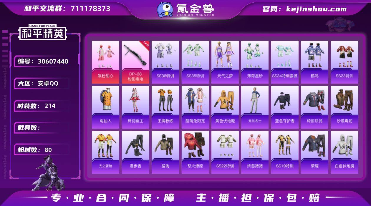 热力值:18975 时装数:214 枪械数:80 战备数:41 游戏等级:48 卓越印记:0 传奇印记:0 绝世印记:0 飒粉甜心 五级DP-28-豹影疾电 未来歌姬降落伞 SS36特训,SS35特训,元气之梦,薄荷星砂,SS34特训套装,白色伏地魔,长空猛禽,达芬奇,龟仙人,光之冒险,鹤鸣,虎虎生威吉莉,幻世保卫者,黄色伏地魔,幻世战舞者,娇憨猪猪,竞技名士,绛羽幽主,酷萌兔限定,蓝色守护者,龙腾端午,莱茵河畔,漫步者,猛禽,魅力单车,麻辣教官,萌趣咩咩,怒火燎原,柠萌假日,牛气冲天,破晓战魂,绮丽涂鸦,骑行爱好者,荣耀,深蓝色名流,沙漠毒蛇,SS17特训,SS18特训,SS19特训,SS20特训,SS21特训,SS22特训,SS23特训,SS24特训,SS33特训套装,探宝勇士,涂山之恋,王牌教练,玉兔迎春,耀眼新星,灼焰舞者 ACE32-冰晶雪宝,铝热弹-炫彩糖果,UZI-炫彩糖果,AKM-霓彩脉冲,S12K-霓彩脉冲,电击枪-喜羊羊与灰太狼,MG-36-薄荷星砂,AC-VAL-彩虹甜喵,AC-VAL-天降萌叽,AKM-彩虹符号,AKM-墨染幽兰,AKM-霓虹街区,AKM-破晓战魂,AKM-生命誓言,AKM-夜灯,AKM-影袭,AKS-74U-鸡智如我,AUG-天降萌叽,AUG-耀粉歌者,AWM-垂柳戏鸭,DP-28-彩虹符号,GROZA-彩虹符号,GROZA-影袭,Kar98K-炫彩节奏,M16A4-幻世战舞者,M249-糯团青竹,M249-破晓战魂,M24-炫彩节奏,M24-影袭,M416-绯红前夜,M416-红色方程式,M416-蓝色火焰,M416-糯团青竹,M762-彩虹符号,M762-天降萌叽,MG3-幻世战舞者,蜜獾-垂柳戏鸭,蜜獾-娇憨猪猪,Mini14-涂山之恋,平底锅-娇憨猪猪,破片手榴弹-太空嘟嘟,S12K-垂柳戏鸭,S12K-幻世战舞者,S12K-娇憨猪猪,S12K-破晓战魂,S1897-炫彩节奏,S686-红色方程式,SCAR-L-红色方程式,SCAR-L-炫彩节奏,SCAR-L-玉兔迎春,SKS-炫彩节奏,SLR-娇憨猪猪,汤姆逊-天降萌叽,UMP45-蓝色火焰,UMP45-涂山之恋,UMP45-夜灯,UZI-娇憨猪猪,UZI-影袭,Vector-彩虹符号,Vector-生命誓言,VSS-彩虹符号 光之冒险尾迹,都市猎人降落伞,娇憨猪猪降落伞 实名:可二次实名