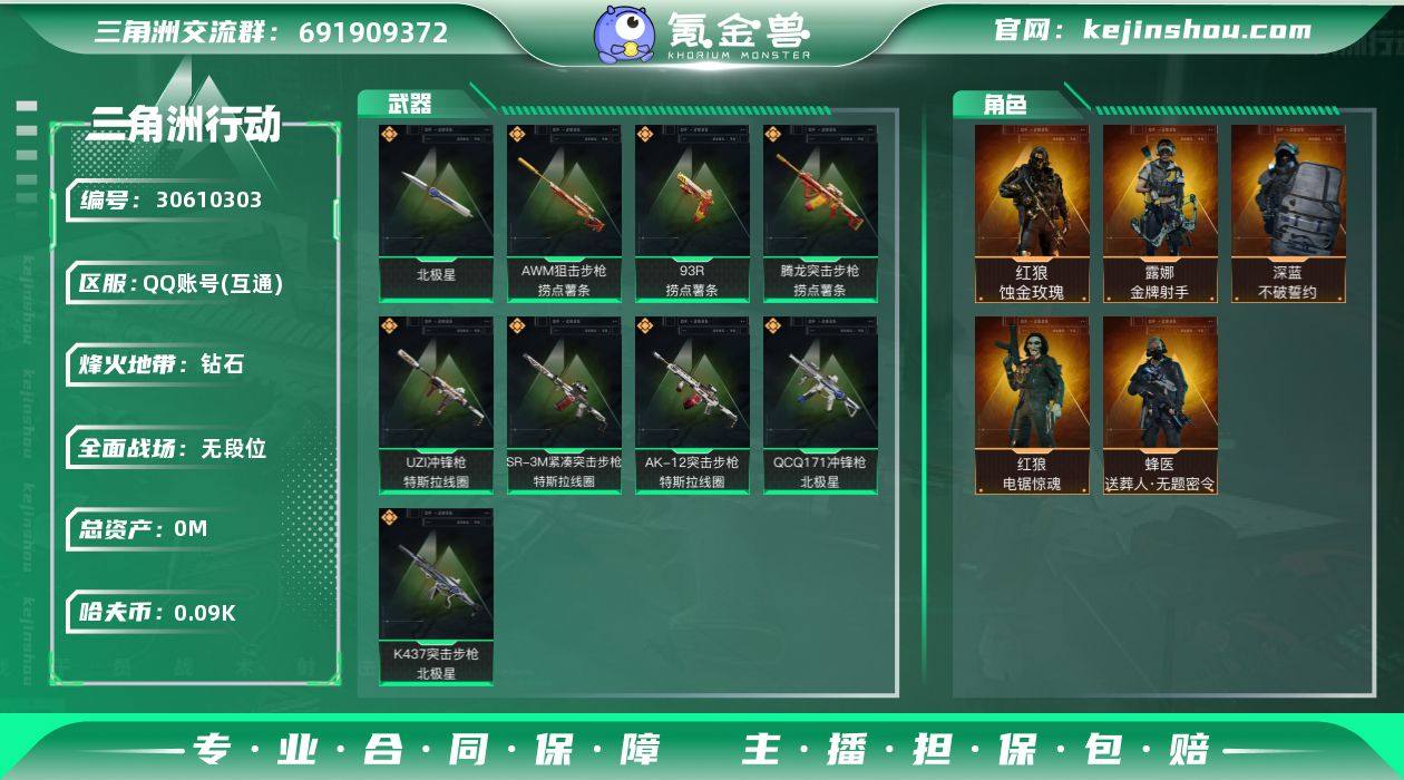 hf12215总资产343m纯币96m+蚀金玫瑰全套+电锯惊魂红狼全套+北极星全套+捞点薯条全套+特斯拉线圈全套+s5s6s7赛季通行证+烽火等级60+特勤部门等级可以+s5巅峰战神+守信不予+永久包赔