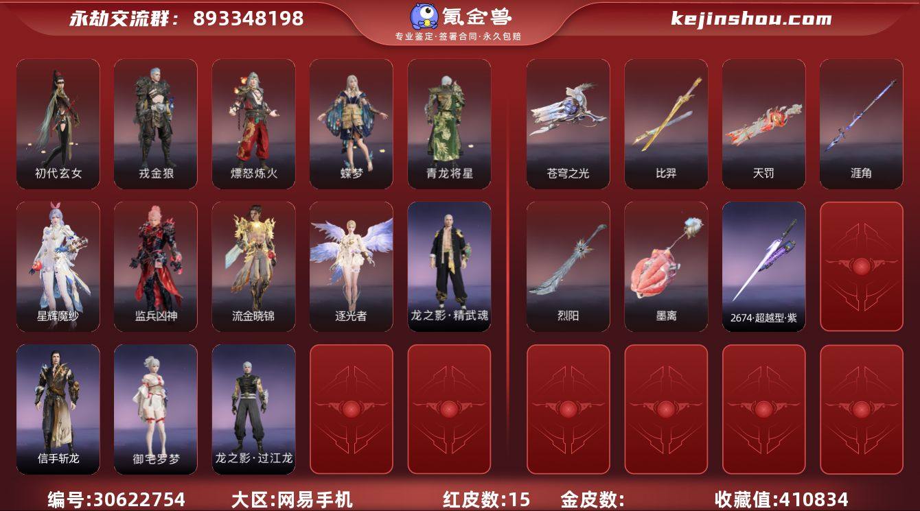 YJJ1368/2.13换绑/等级459/s19三人黄金2/23红597金收藏值410834/墨离/初代玄女/星辉魔纱/戎金狼/熛怒炼火/蝶梦/阴阳师·蛉魂梦使/青龙将星/香雪水兰//沙漠香风/监兵凶神/夜魅游莹//执明神君/流金晓锦/逐光者/2674·终极型·紫(没原色)少阳剑//帝星/比羿/烈阳/涯角/天罚/苍穹之光/2674·超越型·紫/2674·超越型//龙之道·自知/信手斩龙/龙之影·精武魂/炎烈珠/龙之道·至纯/御宅罗梦(白丝)龙之影·过江龙/愤天斩疾/千秋匠心凶虎/夏日派对·赤夏悠漾/夏日派对·半夏晚风//幻丝308070/已绑定手游