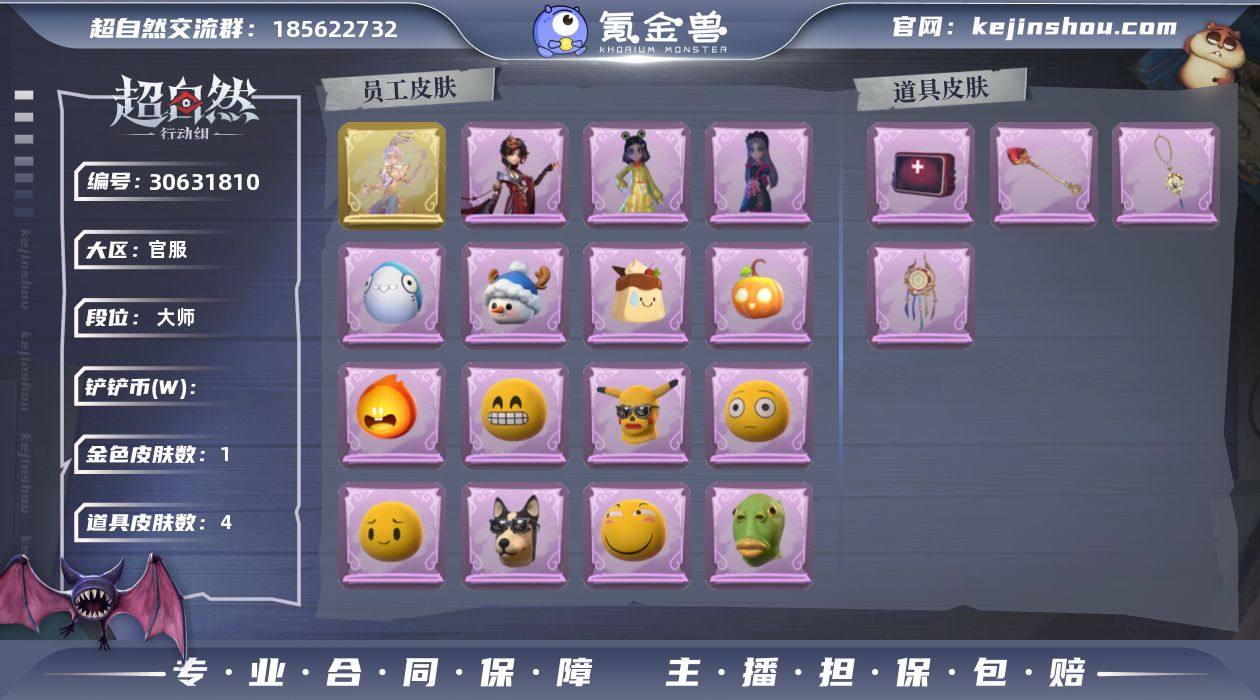 红色皮肤数量:0 金色皮肤数量:1 紫色皮肤数量:3 道具皮肤数量:4 莲华渡 卖家说:没招了新地图什么时