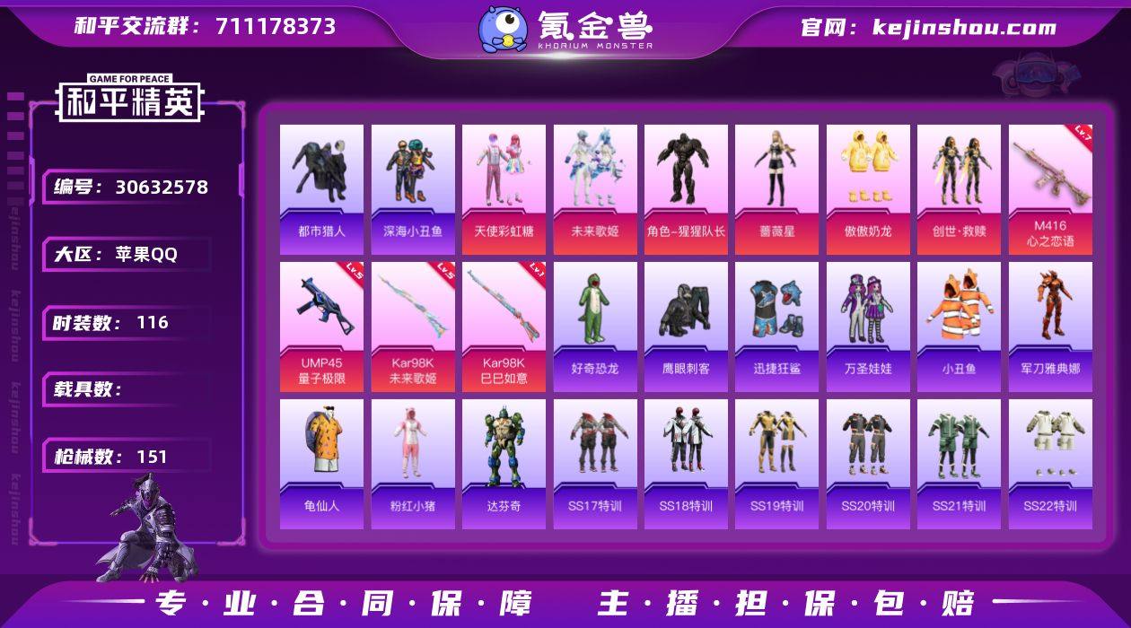 苹果 手Q-6粉装-4特效枪-0载具-1粉色飞行器-44278热力值-12王牌印记-116套装-151枪皮【热门品类】:套装-都市猎人,套装-深海小丑鱼,套装-小丑鱼,角色-军刀雅典娜,套装-龟仙人,套装-粉红小猪【粉色套装】:粉装-天使彩虹糖,粉装-未来歌姬,角色-猩猩队长,角色-蔷薇星,粉装-傲傲奶龙,套装-创世·救赎【粉色枪皮等级】:M416-心之恋语(七级),UMP45-量子极限(五级),Kar98K-未来歌姬(五级),Kar98K-巳巳如意(一级)【粉色枪皮】:M416-心之恋语,UMP45-量子极限,Kar98K-未来歌姬,Kar98K-巳巳如意【粉色飞行器】:变形金刚飞行器【粉色降落伞】:百万伏特降落伞,甜心宝贝降落伞,碧影闪光降落伞,环太平洋降落伞,彩虹甜喵降落伞,第五大道降落伞,未来歌姬降落伞,守护天翼降落伞【稀有套装】:套装-龟仙人,角色-达芬奇【稀有枪皮】:AKM-小鹦鹉BEBE,AKM-彩虹符号,AKM-影袭,AKM-恐龙拽拽,AKM-灼热熔岩,AKM-破晓战魂,AKM-缤纷海域,AKM-霓虹街区,AKM-龙的传人,M16A4-幻世战舞者,SCAR-L-是爱神辣,SCAR-L-玉兔迎春,SCAR-L-红色方程式,SCAR-L-黄金龙骨,M416-夜灯,M416-彩虹嘻嘻猴,M416-糯团青竹,M416-红色方程式,M416-蓝色火焰,GROZA-2B战斗服款,GROZA-异彩先驱,GROZA-彩虹符号,GROZA-影袭,GROZA-懵萌河马,GROZA-春暖花开,GROZA-田园牧歌,AUG-天降萌叽,AUG-耀粉歌者,QBZ-彩虹符号,QBZ-相思残雪,QBZ-飞驰魅影,M762-天星战神,M762-彩虹符号,M762-暗夜鎏金,Mk47-炫光之旅,G36C-懵萌河马,AC-VAL-天降萌叽,AC-VAL-闲梦青缨,蜜獾-天降萌叽,蜜獾-娇憨猪猪,UZI-娇憨猪猪,UZI-影袭,UZI-红色方程式,UMP45-时空追击者,UMP45-春暖花开,UMP45-涂山之恋,UMP45-蓝色火焰,Vector-彩虹符号,Vector-生命誓言,Vector-田园牧歌,汤姆逊-天降萌叽,汤姆逊-异彩先驱,汤姆逊-炫彩节...