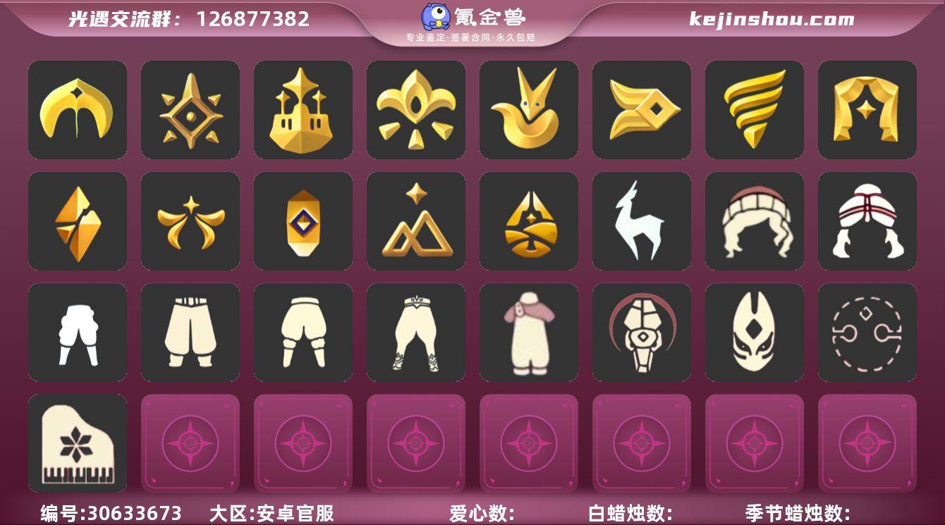 16季12翼白枭巫师帽透明蝶翼武士裤绊爱蝴蝶结公主头书虫明斗篷白雪斗篷巫树犄角详情看图价格可谈 资源:蜡烛711 爱心202 红烛54 12翼 已毕业地图:全图毕业 毕业季节: 潜海季 表演季 破晓季 欧若拉季 追忆季 夜行季 拾光季 归巢季 九色鹿季 筑巢季 二重奏季 姆明季 彩染季 青鸟季 迁徙季季卡 半风行季 毕业季节物品: 暗红斗篷 单边小辫 氧气面具 燕尾斗篷 黄眉企鹅面具 白枭发型 双翼遥鲲斗篷 冥龙斗篷 肩带 追忆之书 留辨蘑菇头 高领舞服 透明蝶翼斗 棕熊面具 绒毛斗篷 粗框眼镜 季卡相机 西部帽 五塑彩羽发 五塑彩带斗 九色鹿丸子头 九色鹿丝带裤 九色鹿飞天斗篷 设计师长袍 光之子试衣 合奏挂画 蓝色燕尾服 白色高脚钢琴 姆明抱枕 姆明大伞 姆明长裙 彩染围巾斗篷 辉光羚羊面具 青鸟面饰 青鸟斗篷 稀有礼包:蝙蝠斗 南瓜头 巫师帽 橘子发饰 绊爱 彩虹耳机 巫树犄角 白雪斗篷 粽叶斗篷 中秋灯笼 热门裤子:背带裤 遥鲲长袍 绑带舞服 奔月长袍 妮妮长裙 海洋武士裤 白棉裤 搓澡巾 紧身连体衣 武士裤 小丑服 女仆围裙 美工衣 红色流珠裙 探险燕尾服 热门面具:矮人面具 狐狸面具 黄鼠狼面具 潜海面具 黄眉面具 一字眉 棕熊面具 向导面具 龙头 玫瑰花面具 玫瑰面具 红脸蛋 黑脸 粽叶面具 鸟羽面具 热门发型:海藻头 爆炸头 大胡子 小飞象 雨妈 卡卡 平菇 龙骨 指甲盖 箬笠 蝴蝶结 公主头 书虫 总裁头 箬笠 明制帽 郡主头 斗笠 绿丝带 虚荣 白枭 圆环发辫 留辫蘑菇头 李逍遥发型 彩色脏辫 彩羽发型 兔子头 双辫发型 樱花头 马蹄莲发型 遥鲲发型 南瓜头 巫师帽 猫猫头 女巫发型 圣诞帽 绊爱发型 光头 热门头饰:毕业羽毛 尖角牛仔帽 牛仔帽 飞羽发饰 橘子发饰 花环...