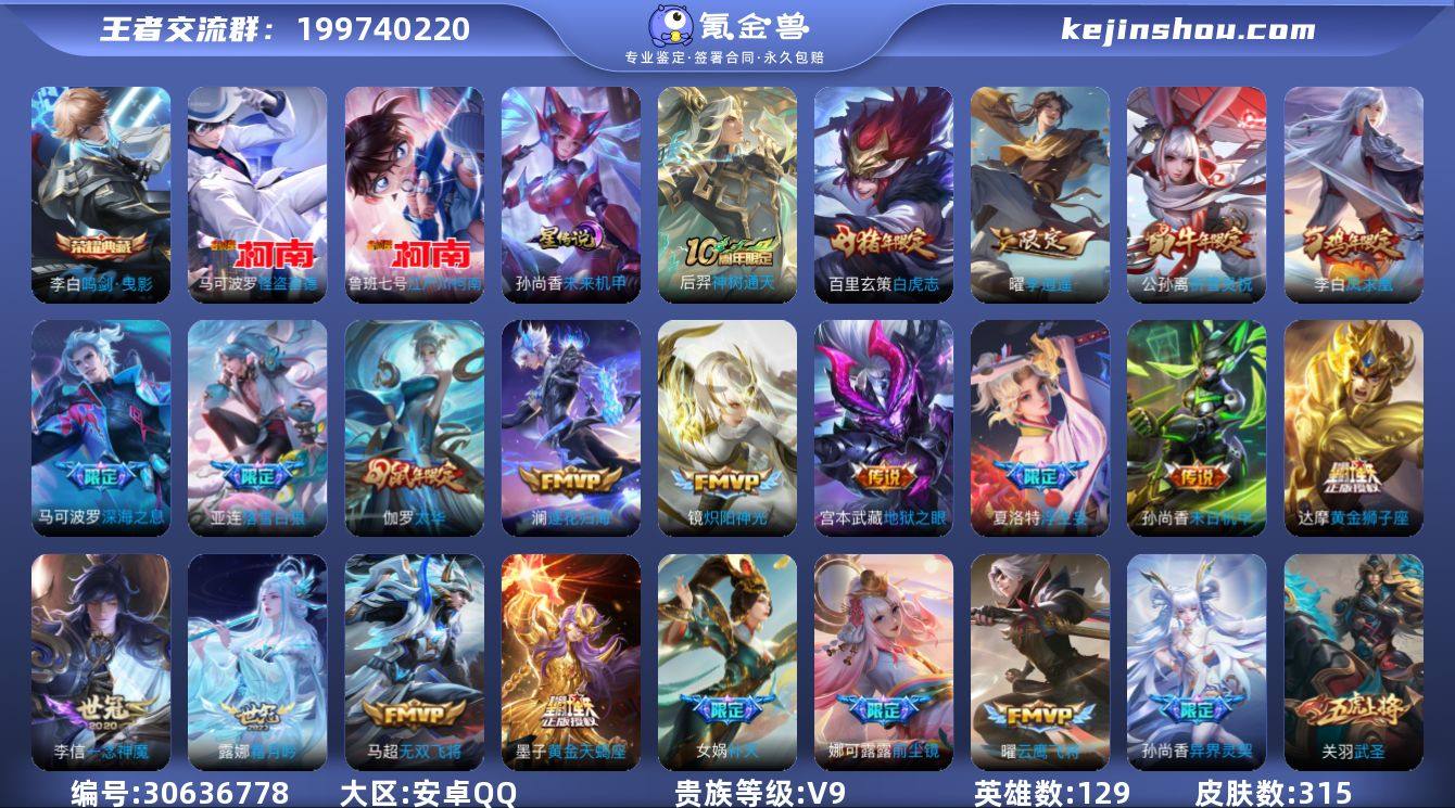 贵族等级:V9 典藏皮肤数:1 珍品无双皮肤数:0 无双皮肤数:0 珍品传说皮肤数:2 传说皮肤数:43 史诗皮肤数:91 皮肤数:315 英雄数:129 段位:钻石 卖家说:每天晚上8:40有时间