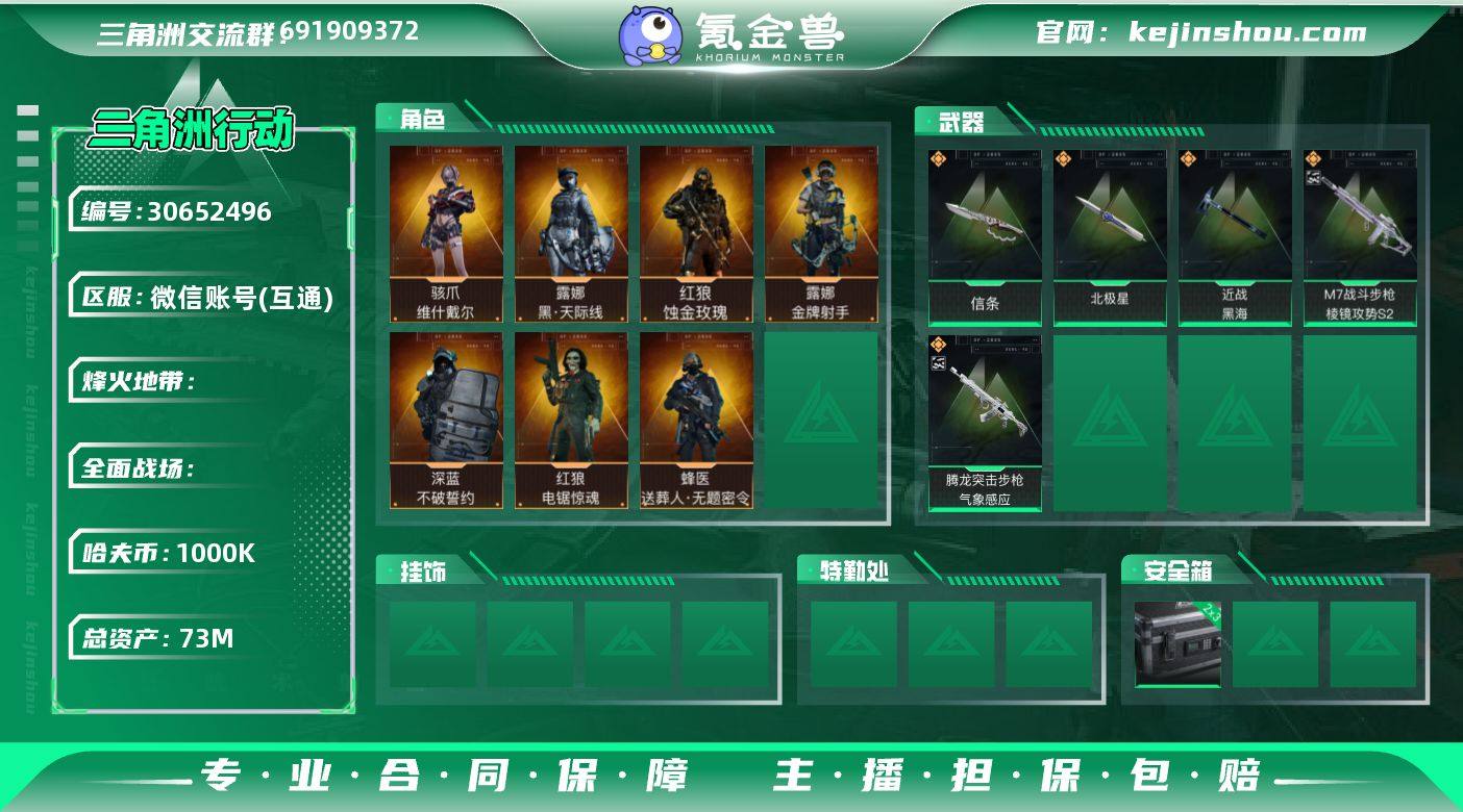 实名:不可二次实名 总资产:73M 哈夫币:1000K S7高级安全箱(2x3)