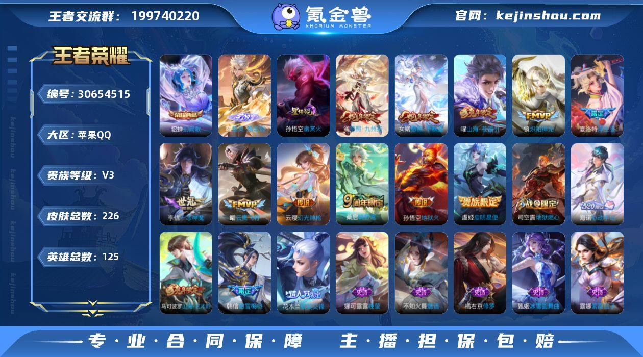 HC31420,打野40段/小国标11253曹操/10636曜/1星元/3292星币,苹果Q-V3-最强王者段位-125英雄-226皮肤-1典藏皮肤-1无双-11传说-59史诗 【荣耀典藏】:貂蝉幻阙歌 【无双皮肤】:曜器灵螭龙剑 【传说皮肤】:女娲愿照千秋盛,澜愿照九州拓,云缨幻光神枪,桑启鸣野蒿,夏洛特浮生妄,曜山海苍雷引,镜炽阳神光,虞姬启明星使,曜云鹰飞将,李信一念神魔,孙悟空地狱火 【限定皮肤】:姜子牙天穹之誓,狄仁杰阴阳师,赵云皇家上将,孙尚香蔷薇恋人,元歌无心,甄姬游园惊梦,马可波罗山海玄木吟,狄仁杰魔术师,达摩沙漠行僧,项羽海滩派对,韩信傲雪梅枪,兰陵王金庭之子,花木兰默契交锋,后羿圣弓游侠,李元芳云中旅人,虞姬启明星使,杨戬潮玩骑兵,干将莫邪胡桃夹子,雅典娜黎明之约,鬼谷子五谷丰年,苏烈千军破阵,百里玄策原初追逐者,梦奇顽趣,沈梦溪大漠名商,裴擒虎擒涛扼浪,嫦娥拒霜思,嫦娥暖冬兔眠,曜山海苍雷引,西施玲珑珍味,鲁班大师探海日志,桑启海盐诗旅,夏洛特浮生妄,暃星界游侠,戈娅驭风魔法,艾琳流音漫舞,司空震地狱燃心,阿古朵江河有灵,张良古海寻踪,蒙犽百解令,蒙恬荣光圣徽,妲己灵卜魔法,鬼谷子天穹祈灯,沈梦溪龙舞盛年,鲁班七号蔬乡物语,李元芳蔬乡物语,刘邦剑破天穹,上官婉儿群星魔术团,程咬金群星魔术团,关羽决胜骁骑,镜青焰无极,项羽苍威无极,海诺心动手记,周瑜熔金海岸 【年限皮肤】:马可波罗山海玄木吟,曜山海苍雷引 【赛季限定】:达摩沙漠行僧,兰陵王金庭之子,张良古海寻踪,李元芳云中旅人,雅典娜黎明之约,苏烈千军破阵,百里玄策原初追逐者,梦奇顽趣,沈梦溪大漠名商,裴擒虎擒涛扼浪,鲁班大师探海日志,桑启海盐诗旅,鬼谷子天穹祈灯,蒙恬荣光圣徽,刘邦剑破天穹,姜子牙天穹之誓 【战令限定】:艾琳流音漫舞,后羿圣弓游侠,杨戬潮玩骑兵...