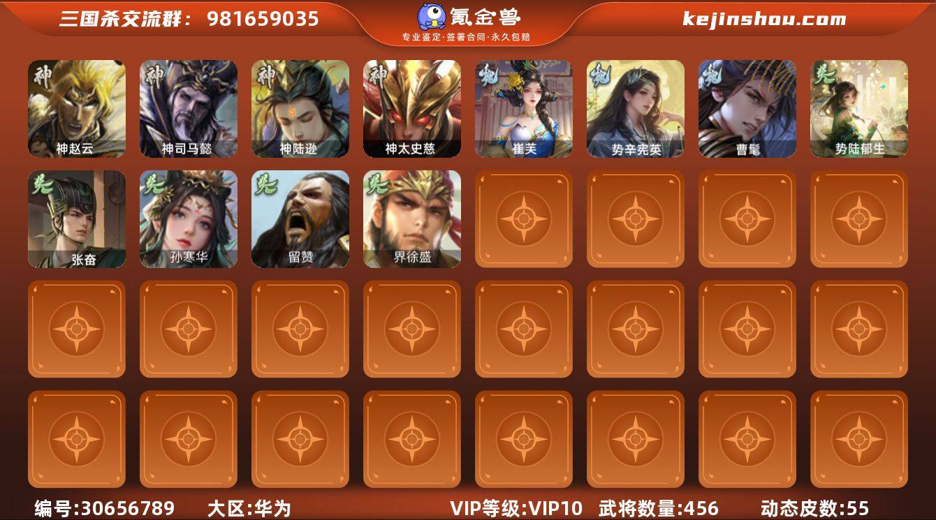 35宝珠三动皮寒华曹髦55史诗孙寒华三动皮 动神司马崔芙35宝珠 1.57W心愿积分,攒攒就是权一。谋荀彧谋黄月英等强将排位147将上分无压力 。华为客户端安卓都能玩。华为双重绑定安全性无需多言 具体以截图为准