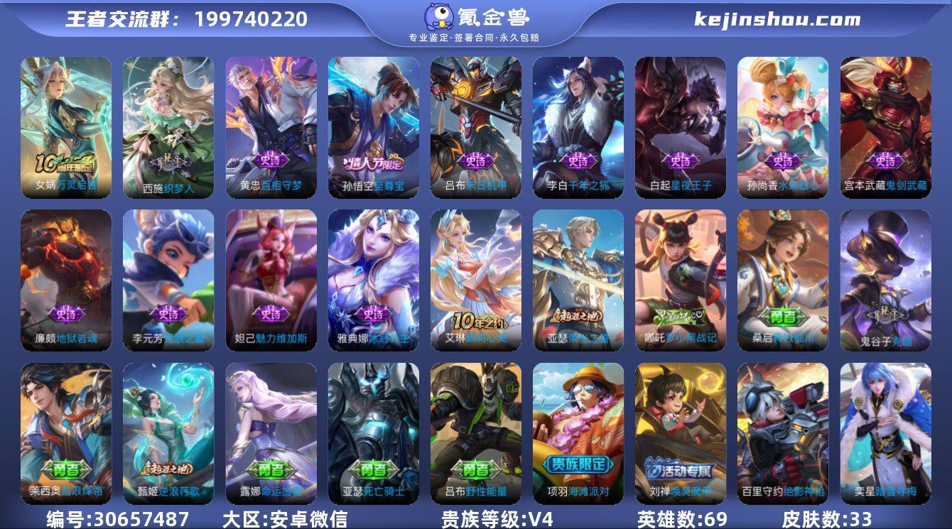 xy15419【秒换绑,无需等三天】V4-33皮肤 安卓V-V-33皮肤2传说 【传说】 神树通天 千山共赴 【热门】万灵启世 至尊宝 冰冠公主 织梦人 黄忠百相守梦 地狱岩魂 逐浪之夏 千年之狐 末日机甲男 星夜王子 鬼剑武藏 克喵 魅力维加斯 水果甜心 69英雄-营地ID:1590183978