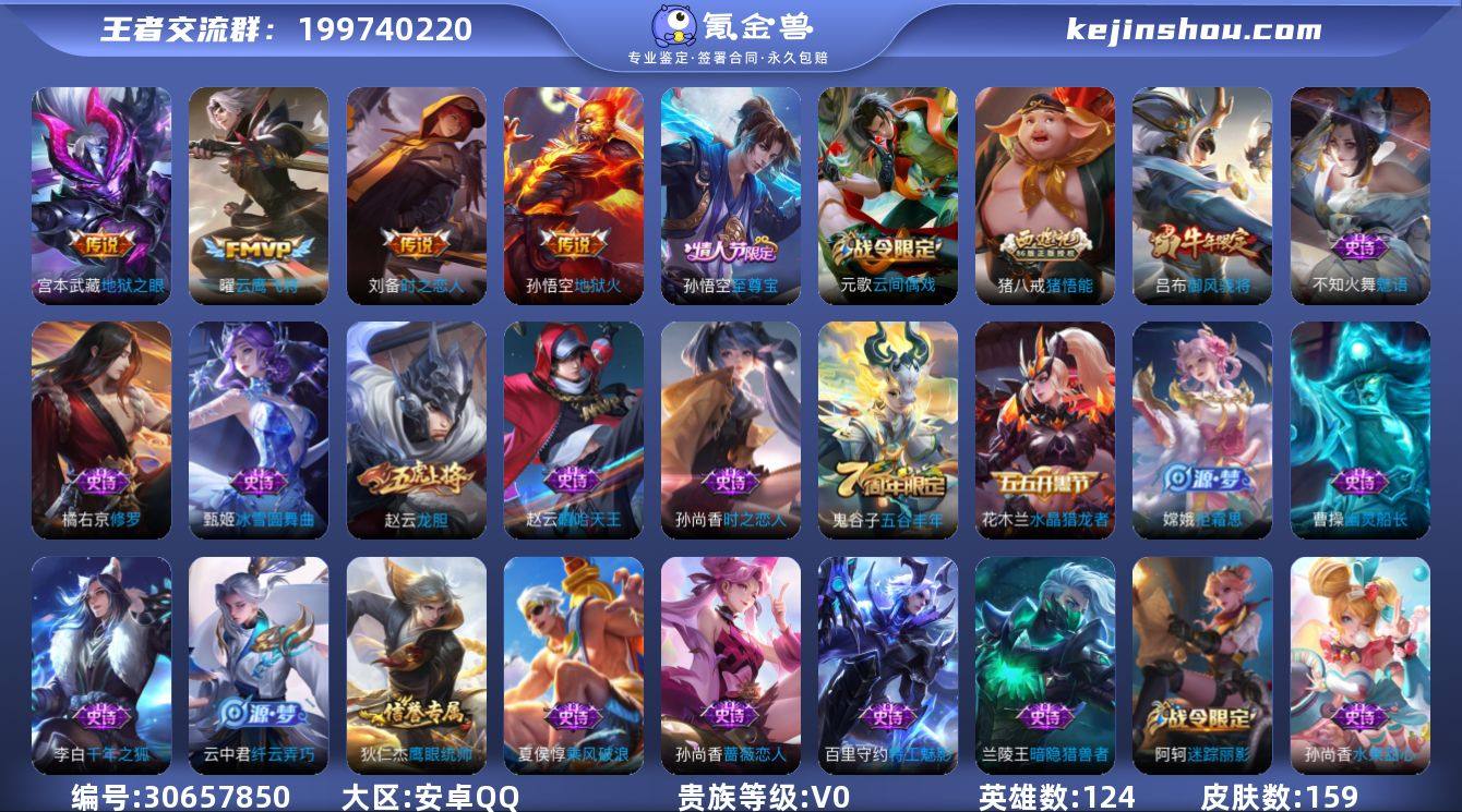 贵族等级:V0 典藏皮肤数:0 珍品无双皮肤数:0 无双皮肤数:0 珍品传说皮肤数:0 传说皮肤数:4 史诗皮肤数:40 皮肤数:159 英雄数:124 段位:白银 卖家说:王者手q一区王者独尊收藏号,自用高等级qq,很多游戏连体,