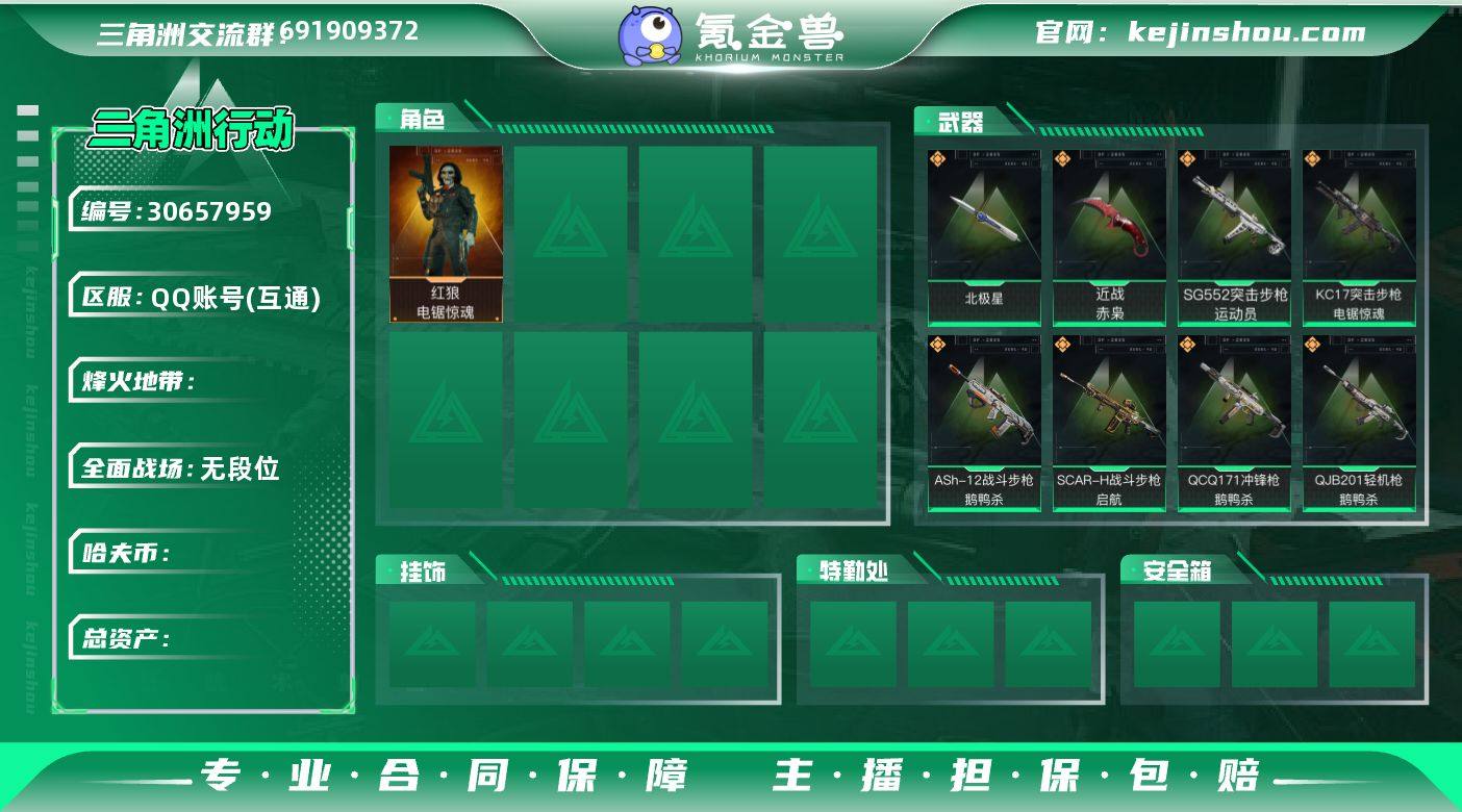 赤枭刀 北极星刀 仓库33M 现金96万 有6套 天才少年深蓝-不破誓约,无名-夜鹰,蜂医-送葬人·无题密令,红狼-电锯惊魂,露娜-金牌射手 M4A1突击步枪-阿米娅,ASh-12战斗步枪-鹅鸭杀,M16A4突击步枪-狩猎时刻,SG552突击步枪-运动员,AK-12突击步枪-夜鹰,AK-12突击步枪-特斯拉线圈,SCAR-H战斗步枪-启航,G3战斗步枪-狩猎时刻,CAR-15突击步枪-阿米娅,K437突击步枪-北极星,KC17突击步枪-电锯惊魂,Vector冲锋枪-狩猎时刻,UZI冲锋枪-特斯拉线圈,SR-3M紧凑突击步枪-特斯拉线圈,勇士冲锋枪-能天使·午夜邮差,QCQ171冲锋枪-北极星,QCQ171冲锋枪-鹅鸭杀,725双管霰弹枪-送葬人-无题密令,M250通用机枪-骑士精神,QJB201轻机枪-鹅鸭杀,复合弓-黑·天际线 17/4 df12-13,编号:WPIWS06