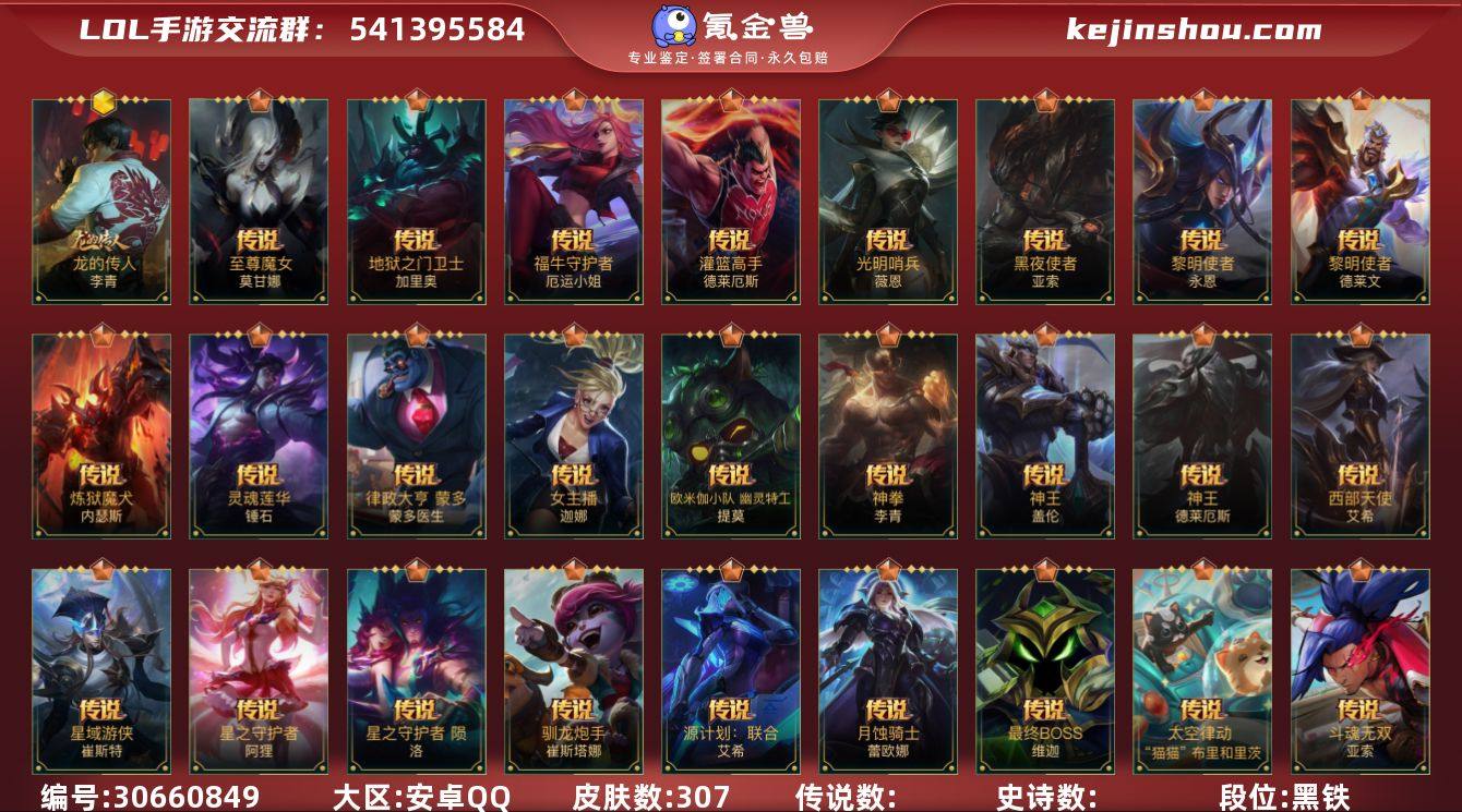 【LSC331】133英雄/307皮肤/璀璨钻石/夜星流火 金克丝/龙的传人/山海绘卷泰坦/神王盖伦/光明哨兵薇恩/真实伤害 艾克/星域游侠卡牌/至尊魔女 莫甘娜/太空律动机器人/源计划:超体/黑夜使者亚索/斗魂无双亚索/星之守护者阿狸/斗魂无双 卢锡安/月蚀骑士蕾欧娜/驯龙炮手/欧米伽小队 幽灵特工/星之守护者 陨/霸天原祖 沃利贝尔/神拳盲僧/律政大亨/炼狱魔犬/福牛守护者女枪/黎明使者永恩/西部魔影 永恩/灌篮高手/神王诺手/女主播风女/黎明使者德莱文/源计划:联合/西部天使寒冰/地狱之门卫士/最终BOSS维迦/灵魂莲华锤石/钢铁军团/霸天剑魔亚托克斯/腥红之月剑魔/惊悚派对/殇之机器人/地狱火阿木木/摄魂猎手凯隐/霸天战士狮子狗/雷喵喵尔/星域先知(可升级)/丧尸努努/小蜜蜂努努和威朗普/地狱行者猴子/水晶玫瑰薇恩/探梦奇旅艾克/暗星发条/泳池派对发条/天棱信风 奥莉安娜/腥红之月皎月/星之守护者佐伊/恶魔之刃/斗魂无双赵信/暗星螳螂/战斗校长猫咪/烘焙童谣猫咪/末路管家/猛虎布隆/圣诞老人/礼物选好了吗? 布隆/西部牛仔/腥红之月烬/灰烬领主/东恒之曜奥瑞利安索尔/腥红之月卡牌/怪诞童话 崔斯特/弹幕天使/电玩女神卡莎/K/DA ALL OUT卡莎/斗魂无双尼菈/玉剑传说 苍鸾/清剿小队潘森/未来战士潘森/铁血女忍/K/DA ALL OUT阿卡丽/源计划:暗影/行云墨舞 阿卡丽/源计划:火/泳池派对剑姬/玉剑传说 无双/福牛守护者剑姬/苹果机器人/福牛守护者安妮/源计划:风/战场之王亚索/灵魂莲华亚索/电玩女神阿狸/幻梦甜心阿狸/源计划:阴/死亡誓约劫/灵能特工劫/玉剑传说 无劫/武神/未来战士卢锡安/源计划:山/战斗学院蕾欧娜/欧米伽小队 魔鬼伞兵/小恶魔/我,羽饰骑士 崔丝塔娜/灵魂莲华提莫/小蜜蜂提莫/电玩女神琴女/驯龙女巫/银河魔装机神龙女/秘旅探索者龙女/源计划:裁决/炼狱魔女/欧米伽小队 毒针狙击手 图奇/太空律动“百万调...