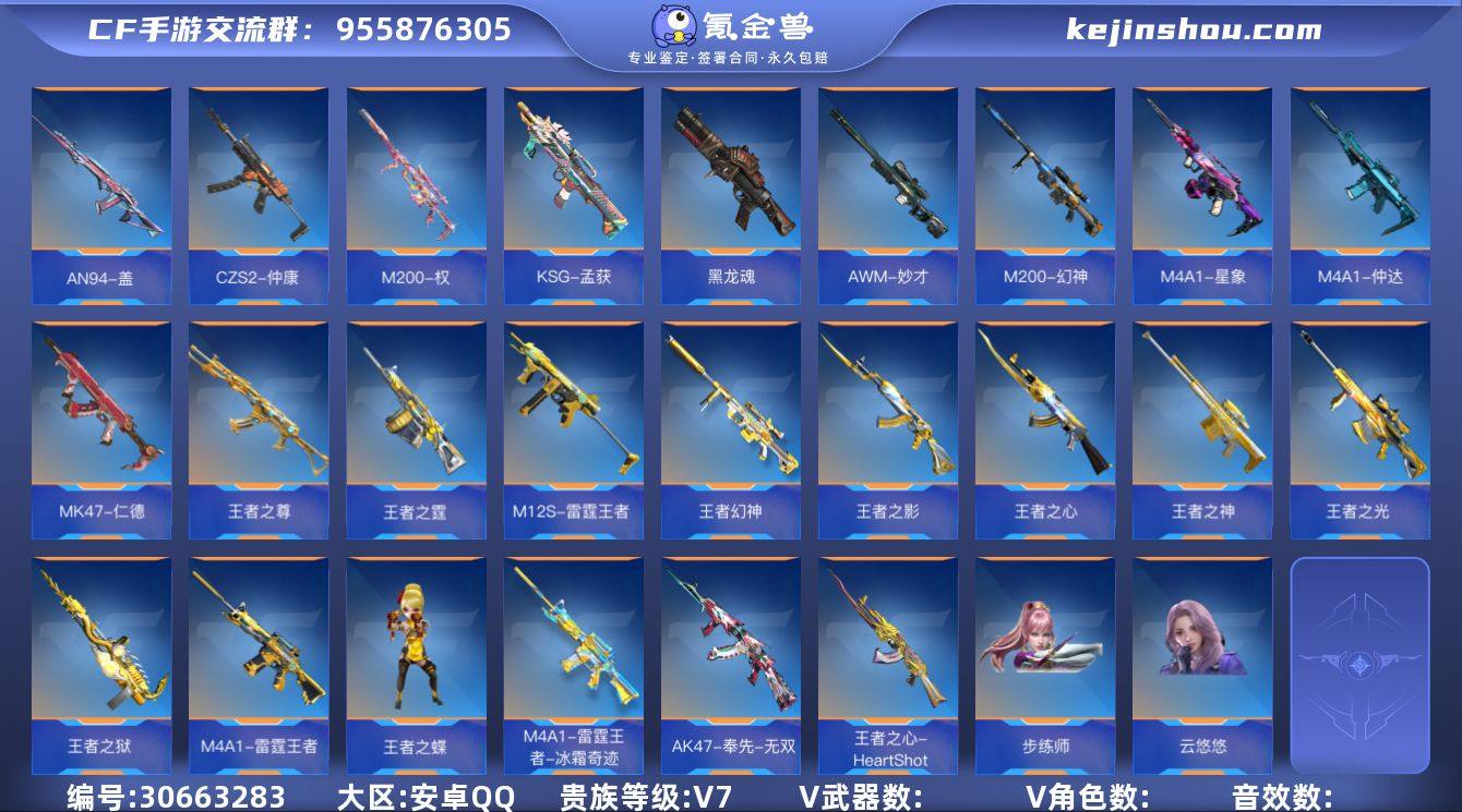 安卓Q☝贵族7☝心至尊☝云悠悠☝步练师☝王者幻神☝M4A1-雷霆王者-冰霜奇迹☝王者之心-HeartShot☝M200一权☝黑龙魂☝AK47-奉先一无双☝M4A1-星象☝MK47-仁德☝M4Al-仲达一过载☝王者之影☝王者之尊☝AWM-妙才-过载☝王者之神一冰霜奇迹☝M200一幻神☝AN94-盖☝王者之霆☝KSG一孟获☝王者之狱☝王者之蝶☝M12S-雷霆王者☝CZS2-仲康☝COP 357-雷霆☝COP 357-堕天神☝COP 357-安琪拉