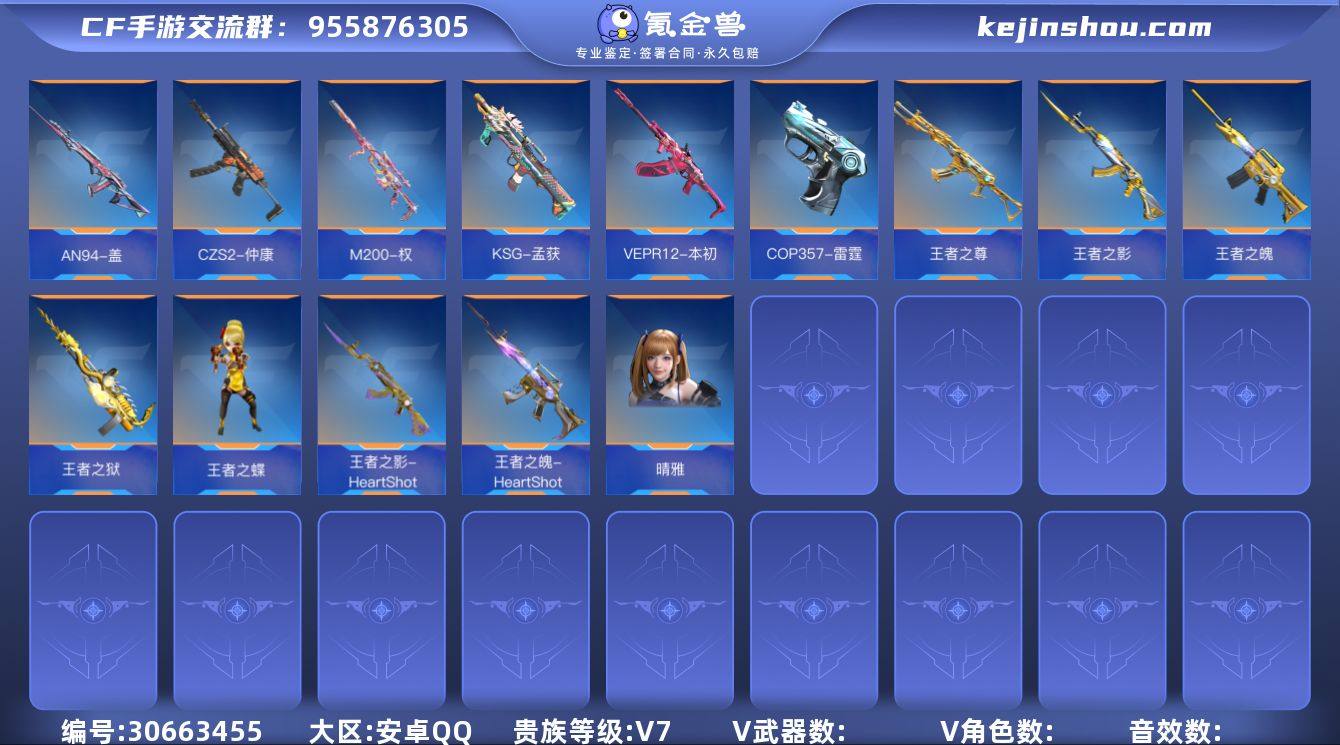 安卓Q☝贵族7☝晴雅☝M200-权☝王者之影-HeartShot☝王者之魄-HeartShot☝VEPR12-本初-深渊领主☝王者之尊☝AN94-盖☝GM6一逆骨☝王者之狱☝王者之蝶☝CZS2-仲康☝KSG-孟获☝C0P 357-雷霆☝详细见图☝