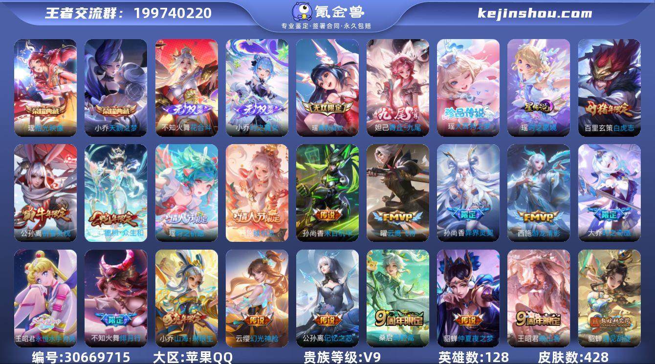 大乔西施妲己瑶王昭君全皮,小乔甄姬差1满