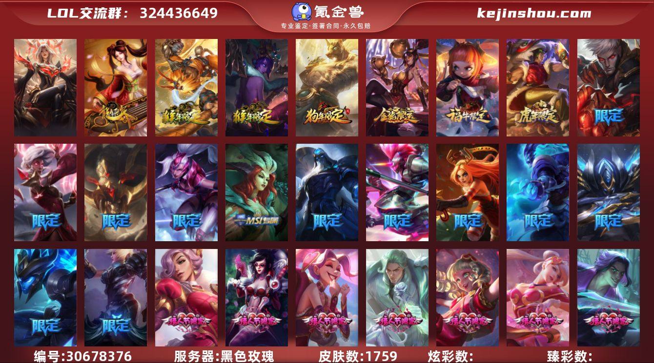 联盟不朽阿狸!圣堂瑟提金克丝!7终极!四色龙虾!暗星绝杀!创世暗夜!圣天龙!冰原酒桶女警!灭世天煞劫!兔司令女枪!雪花图标!2终极结算特效!T1小小奥利安娜!青花瓷小小刀妹!玉剑传说小小莫甘娜!源计划菜大师!气象主播小小迦娜!灵魂莲华小小阿狸!水云天池棋盘!E12379 黑色玫瑰 1759皮2圣堂7终极144神话362限定