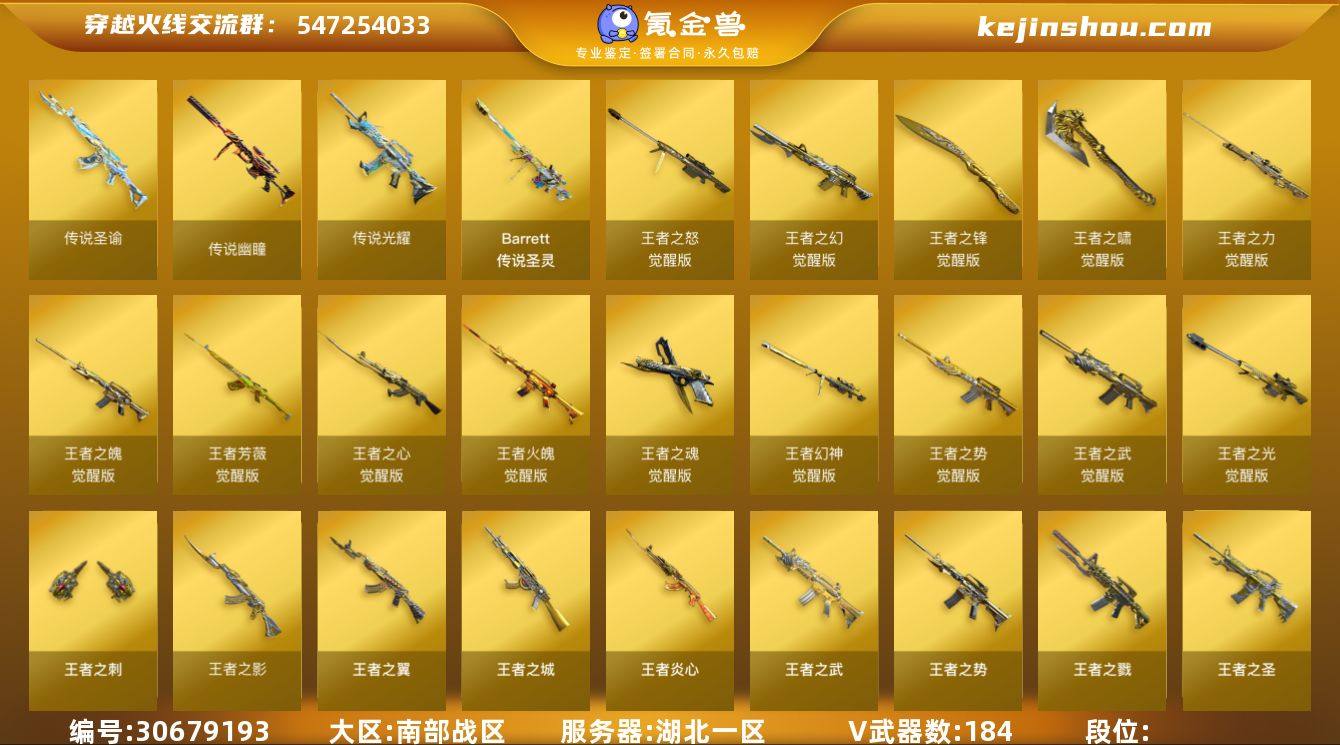 南部战区(湖北一区)ys【生化爆破挑战三全号】六传说【传说影煞,传说幽瞳,传说圣渝,传说光耀(序列号1314),传说暗裔,传说圣灵】184v【M200-幻神,Kar98k-星神,王者幻神,王者星霆,武圣套装,CF网剧冠军武器套装,ScarLight-白虎,HK417-朱雀,QBZ03-金色蔷薇,M4A1-青龙,荣耀世冠-雷神,AWM-裁决,6盘龙+6炼狱+6烈龙+6修罗+6黑骑士-斯泰尔-蝴蝶,COP-堕天神,柯尔特-竞技荣光,天神-波塞冬,双面神,ScarLight-马枪,金刚伞,跳跳鲨,黄金猫猫手套】38王者【王者幻神,王者星霆,王者炎心,王者芳薇,王者冰魄,王者火魄,王者之鲨,王者雷怒,王者蔷薇,王者之光,王者之决,王者之力,王者之怒,王者之魂,王者之灵,王者之刺,王者之锋,王者之啸】7炫金【炫金黑龙,炫金雷神,炫金千变,炫金毁灭,炫金天龙,炫金天神】14角色【传说影煞,妮妮,葵,零,迷迭香,审判者,瞳,樱,炫,魅影,王者-春,王者-魅影,王者王力宏,王者樱-热浪之夏】1音效【Barrett-毁灭音效卡】48皮【雷神-宠儿-2019MVP,毁灭-星空,火麒麟-心动糖果,雷神-星空,毁灭-AG-CFPLS15冠军,黑骑士-地狱火,黑骑士-冠军之势,火麒麟-CFS2018,火麒麟-冠军之心,天龙-传奇白鲨,火麒麟-AG战队,天龙-传奇70KG,黑武士-361,毁灭-冠军之怒】vip6 截图展示段位不代表实际段位 如赛季更新等不可抗拒因素发生变化、时限道具不保证所剩时间