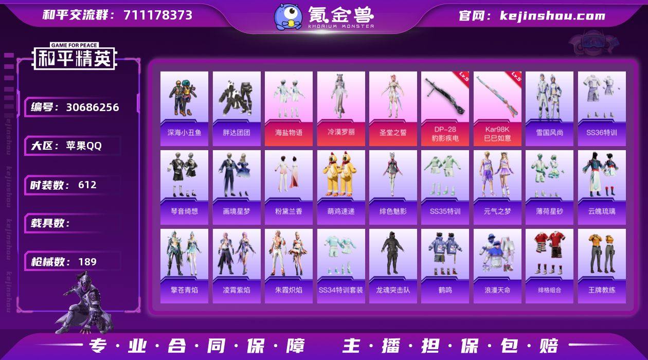 热力值:54076 时装数:612 枪械数:189 战备数:144 游戏等级:62 卓越印记:1 传奇印记:1 绝世印记:0 海盐物语,冷漠罗丽,圣堂之誓 五级DP-28-豹影疾电,五级Kar98K-巳巳如意 炫彩糖果降落伞,炫彩糖果飞行器,无垠阁降落伞,萌物绒绒飞行器,碧影闪光降落伞,初号机 觉醒Ver.降落伞,精灵梦叶罗丽降落伞,冷漠罗丽降落伞,莲影清波降落伞,暖熊萌萌降落伞,天之羽翼降落伞,星梦奇缘降落伞 雪国风尚,画境星梦,琴音绮想,SS36特训,炫彩糖果,粉黛兰香,绯色魅影,萌鸡速递,SS35特训,元气之梦,薄荷星砂,云魄琉璃,凌霄紫焰,擎苍青焰,SS34特训套装,朱霞炽焰,碧波幻想,缤纷果语,白光莹,冰河战士,白糯汤圆,白色伏地魔,长空猛禽,超能勇士,春日漫步,纯真浪花,顶瓜瓜,蝶变,都市魅力,飞驰魅影,绯格组合,粉红小猪,粉恋花,飞行日记,光之冒险,红潮炫舞,华灯初上,鹤鸣,湖蓝色名流,黑色伏地魔,黄色伏地魔,黄色名流,黄色运动,红色运动,幻世战舞者,幻羽潜行,幻影武者,火种守卫者,鲛海歌灵,酒红色名流,惊鸿侠骨,橘黑制服,娇憨猪猪,竞技达人朋克,竞技名士,极速红龙,极速竞梦,街头潮人,街头风暴,军械专家,锦衣飞扬,酷潮明星,空岛之星,蓝冰羽,蓝彩潮人,龙的传人,灵公主,龙魂突击队,猎鹰,浪漫天命,蓝色守护者,蓝色运动,恋语绒绒,冷焰舞者,Mark.06,猛禽,萌黄之夏,魅力单车,麻辣教官,曼妙人鱼,萌趣咩咩,霓虹极客,霓虹街区,柠萌假日,牛气冲天,牛气满满,胖达团团,破蛋小黄鸡,破晓战魂,情公主,绮丽涂鸦,青年教官,青涩时光,清新柠檬,青玉碎影,云朵鹅,热情海星,人气偶像,热血青春,深海小丑鱼,深蓝色名流,沙漠兵团,帅气教官,SS18特训,SS19特训,SS20特训,SS21特训,SS22特训,SS23特训,SS24特训,SS25特训,SS26特训,SS27特训,SS28特训,SS29特训,SS30特训套装,SS31特训套装,SS32特训套装,SS33特训套装,水银刺客,探宝勇士,豚鼠丹丹,特训学院,特战英豪,特战装甲,完美偶像,王牌教练,炫蓝之夏,雪绒豹,旭日情侣,夏日倾情,夏日音浪,血色贵族,香桃花海,星途旅人,星渊小夜曲,迎春赐吉,异彩先驱,耀粉歌者,摇滚舞王,银尘,元气发射,音速流光,玉兔迎春,野性战心,焰鹰斗篷,异域银装,战地督导,紫幽梦,灼焰舞者 ACE32-冰晶雪宝,PKM-啾咪啾咪,AA12-G-画境星梦,ACE32-画境星梦,M1加兰德-画境星梦,MK12-乌木金纹,MP5K-画境星梦,平底锅-画境星梦,UMP45-极意拳锋,AUG-冰晶雪宝,铝热弹-炫彩糖果,UZI-炫彩糖果,AKM-霓彩脉冲,Famas-霓彩脉冲,SVD-霓彩脉冲,十字弩-异瞳寒姬,破片手榴弹-拽到爆炸,S12K-霓彩脉冲,SCAR-L-彩虹符号,AKM-涂鸦街区,Mini14-鸡智如我,AMR-喜羊羊与灰太狼,电击枪-喜羊羊与灰太狼,MG-36-薄荷星砂,P90-玩趣呆呆,AA12-G-纯真浪花,AC-VAL-天降萌叽,AKM-龙的传人,AKM-墨染幽兰,AKM-破晓战魂,AKS-74U-鸡智如我,ARX-凌霄紫焰,AUG-兔兔小魔女,AUG-耀粉歌者,AWM-垂柳戏鸭,AWM-纯真浪花,AWM-焰鹰斗篷,爆炸猎弓-惊鸿侠骨,DBS-荧海星豚,DBS-焰鹰斗篷,短管霰弹-星穹咏叹调,大砍刀-青空秋雨,大砍刀-云朵鹅,DP-28-橘柚倾心,DP-28-焰鹰斗篷,G36C-星穹咏叹调,GROZA-海盐豹豹,GROZA-异彩先驱,GROZA-影袭